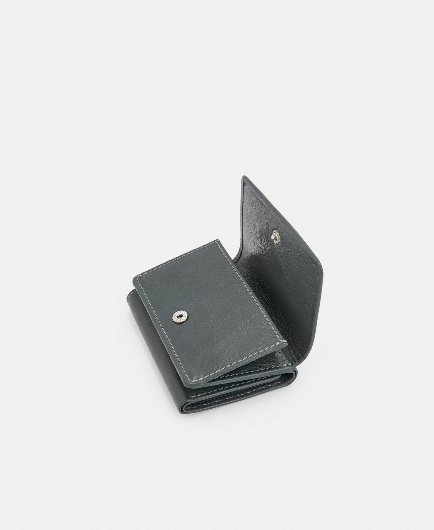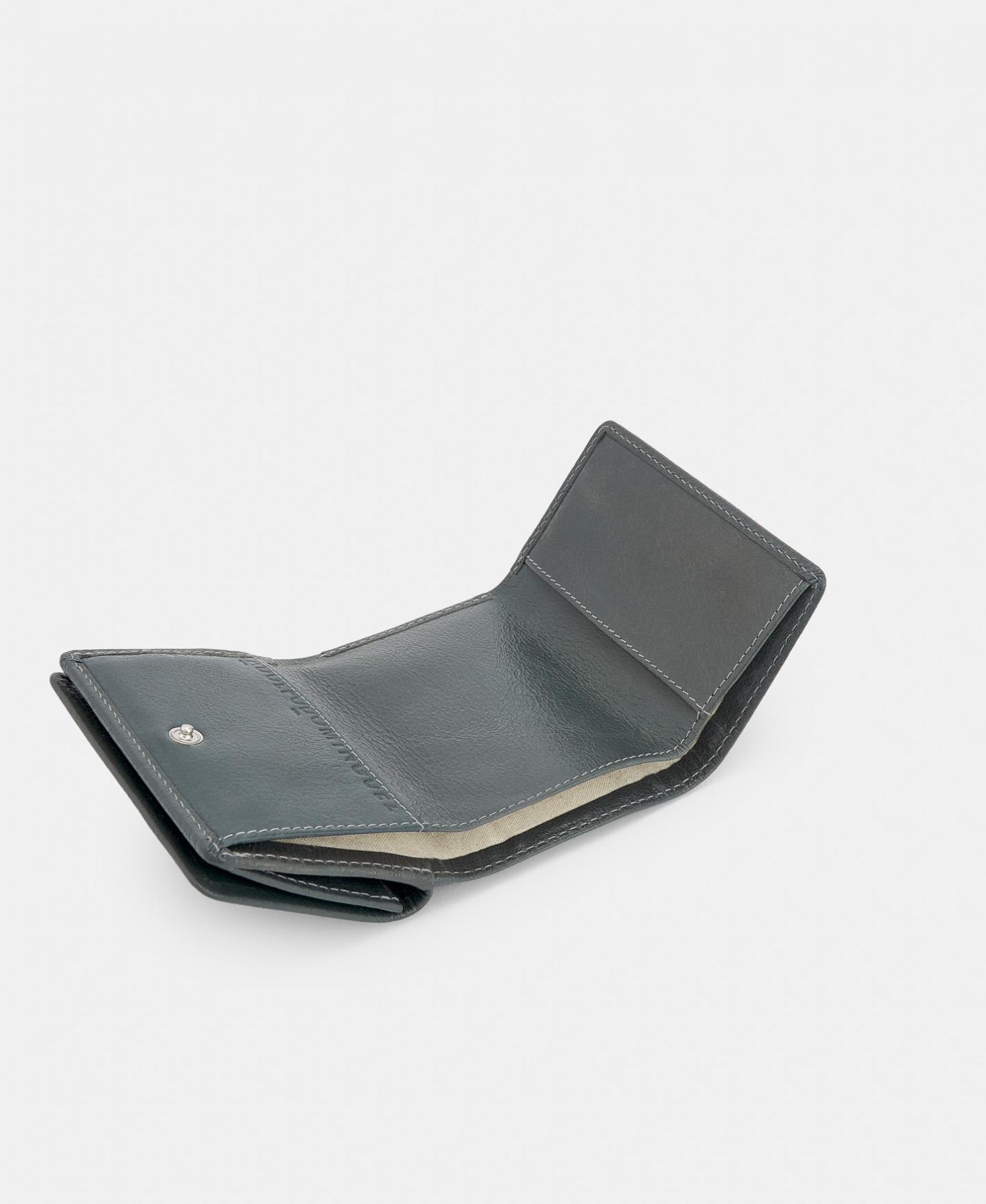 Cartera en piel craquelada. Tiene un compartimento con cierre de solapa. Logotipo grabado en plata. Forro de algodón orgánico.