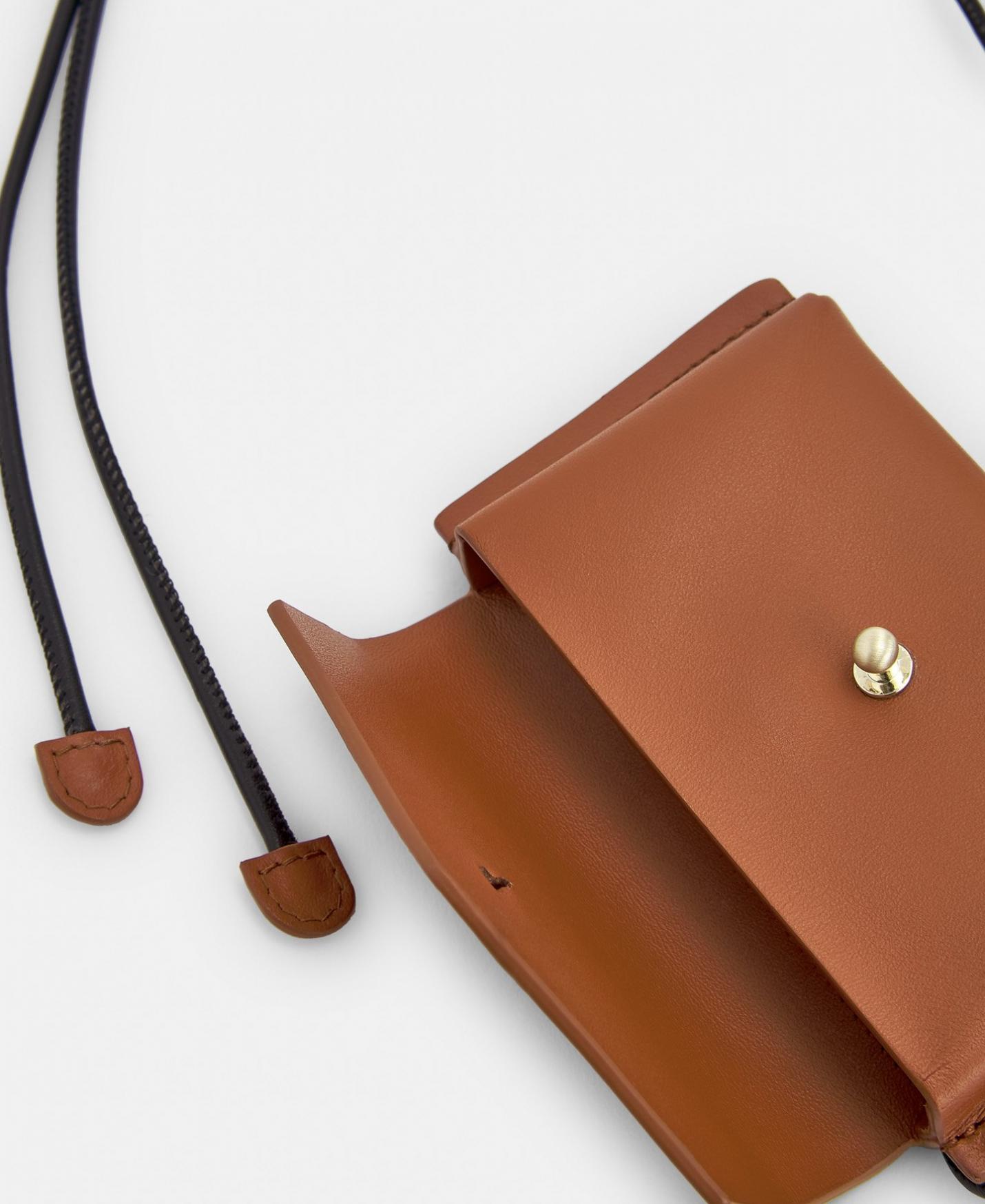Tarjetero en vaqueta con cordón regulable y cierre de gemelos.
