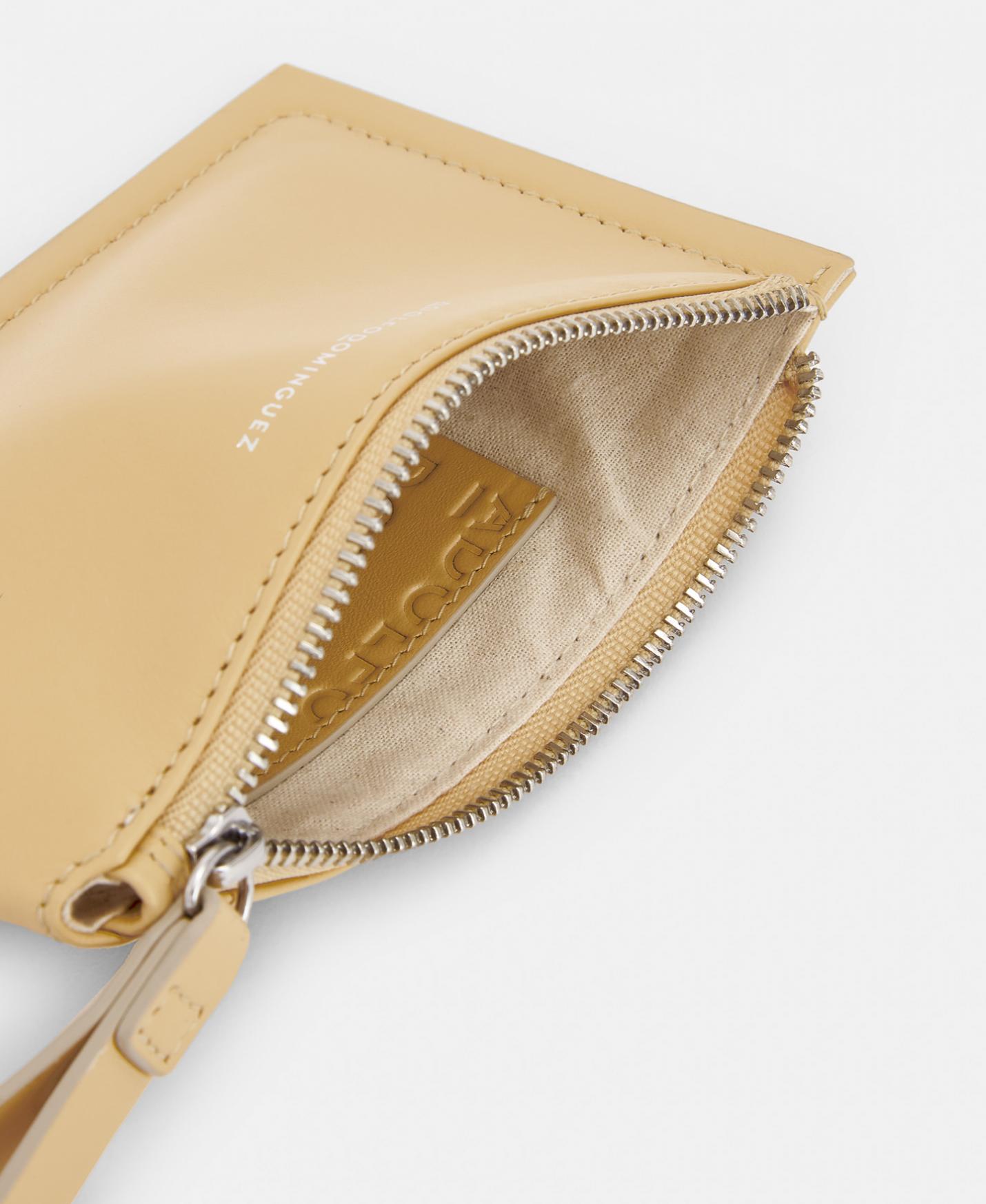 Tarjetero pequeño en piel vaqueta. Tiene un compartimento con cierre de cremallera. Logotipo grabado en plata. Forro de algodón orgánico.