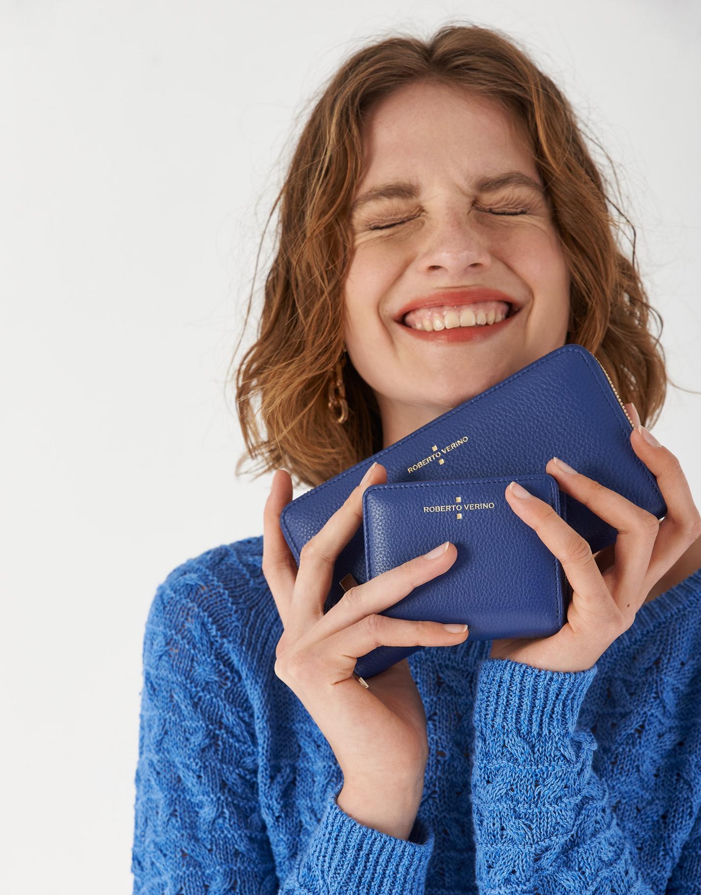 Carteras Roberto Verino | Billetera Grande Juliete Piel Granulada Color Azul Mujer