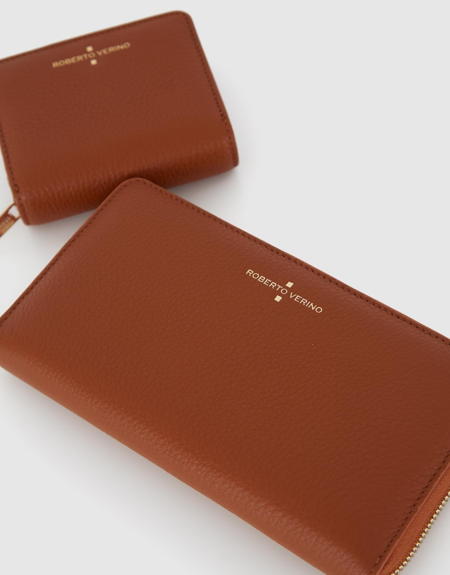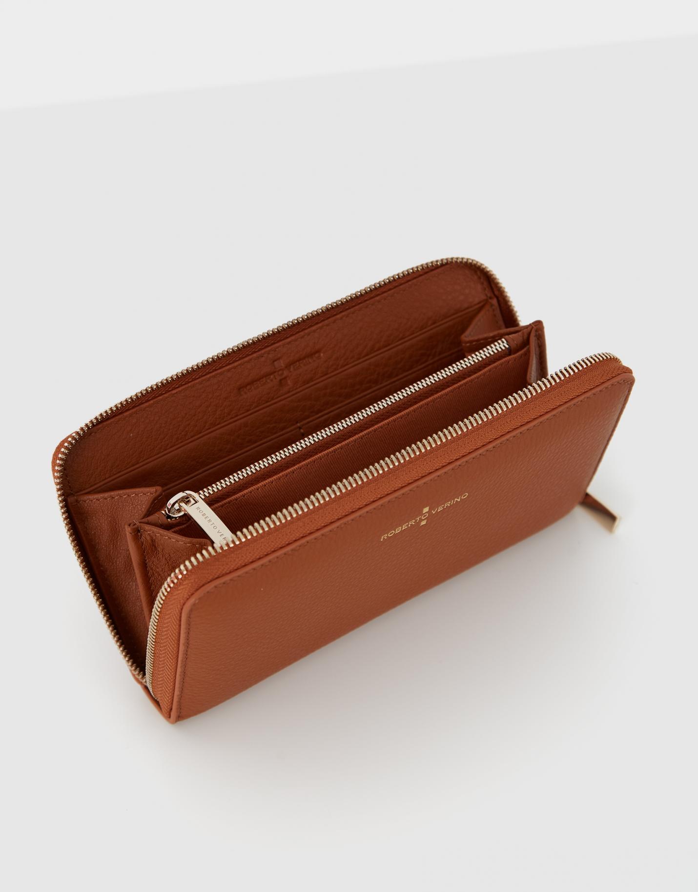 Carteras Roberto Verino | Billetera Grande Juliete Piel Granulada Color Cuero Mujer