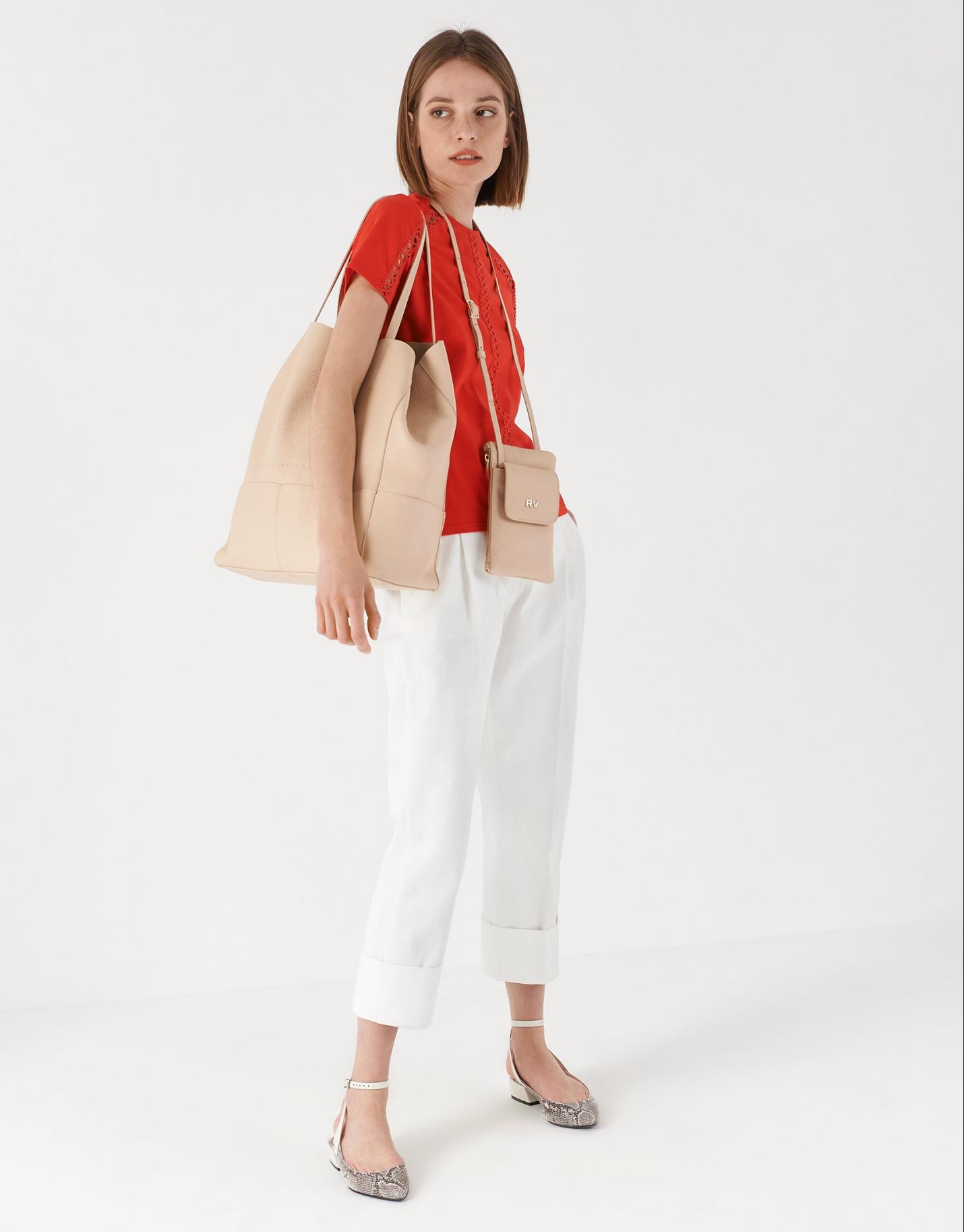 Carteras Roberto Verino | Cartera Portamóvil Piel Granulada Beige Mujer