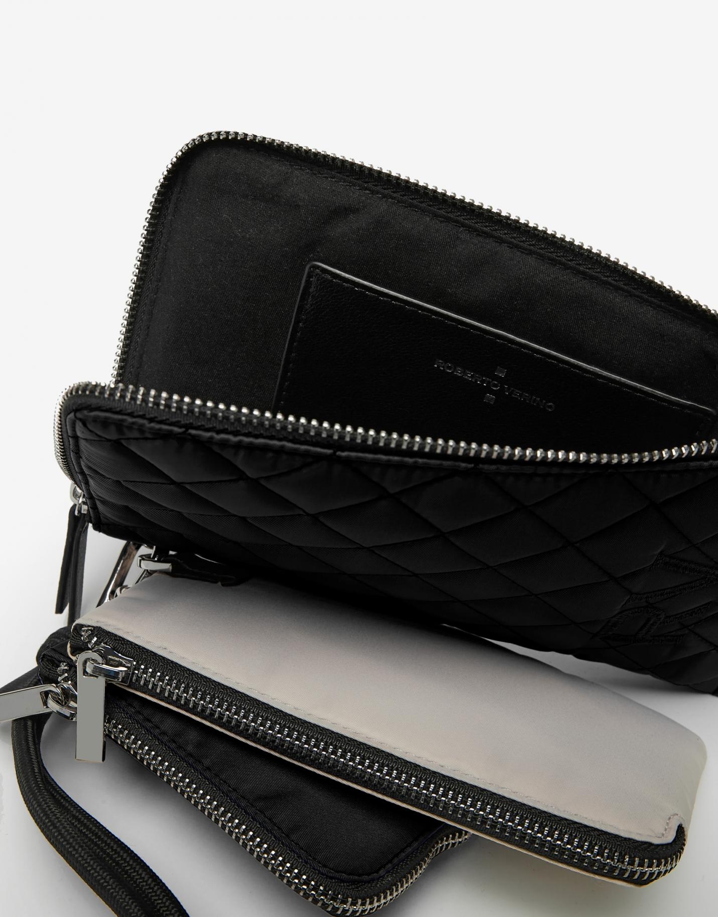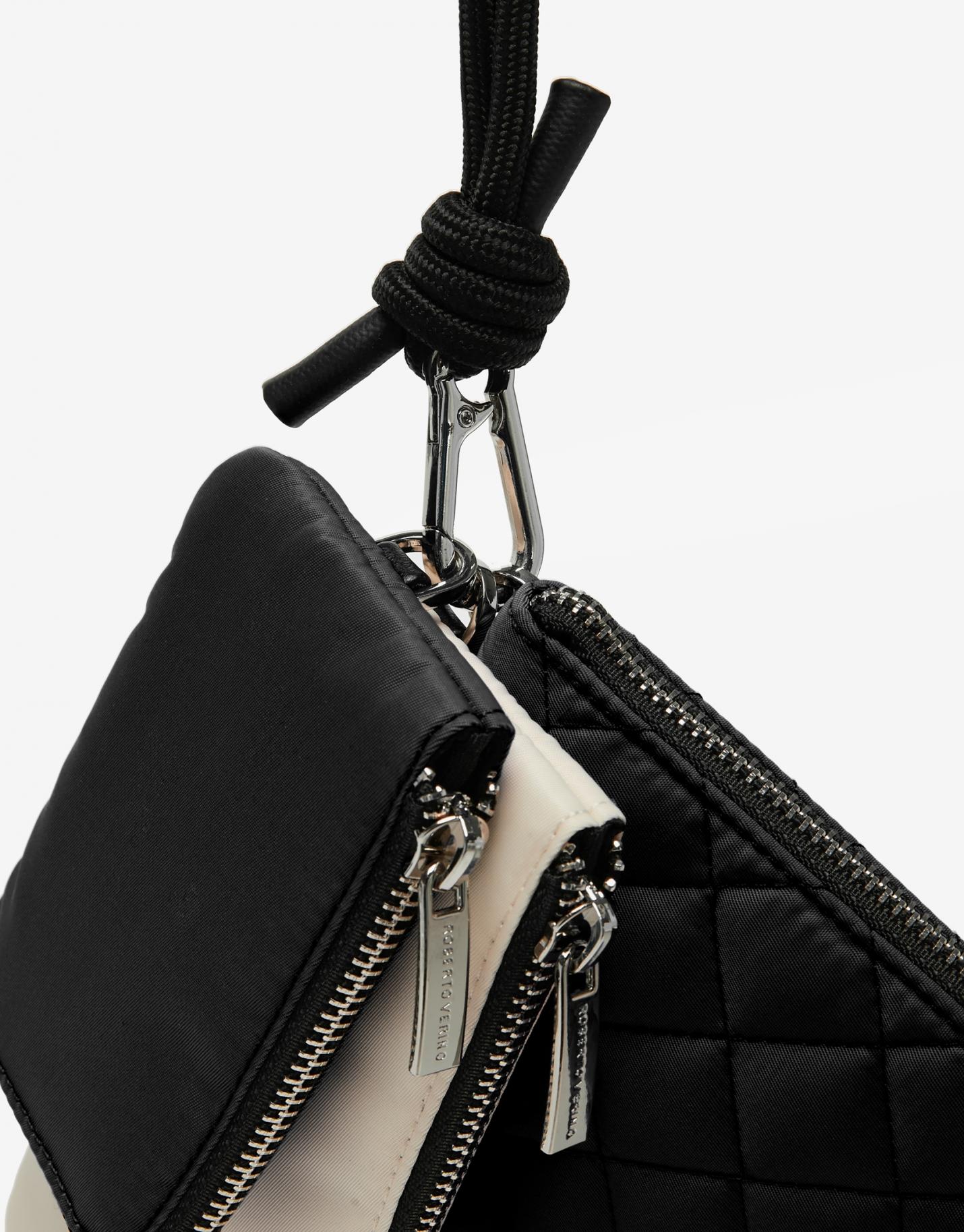 Carteras Roberto Verino | Square Set Tres Piezas Nailon Negro Y Beige Mujer