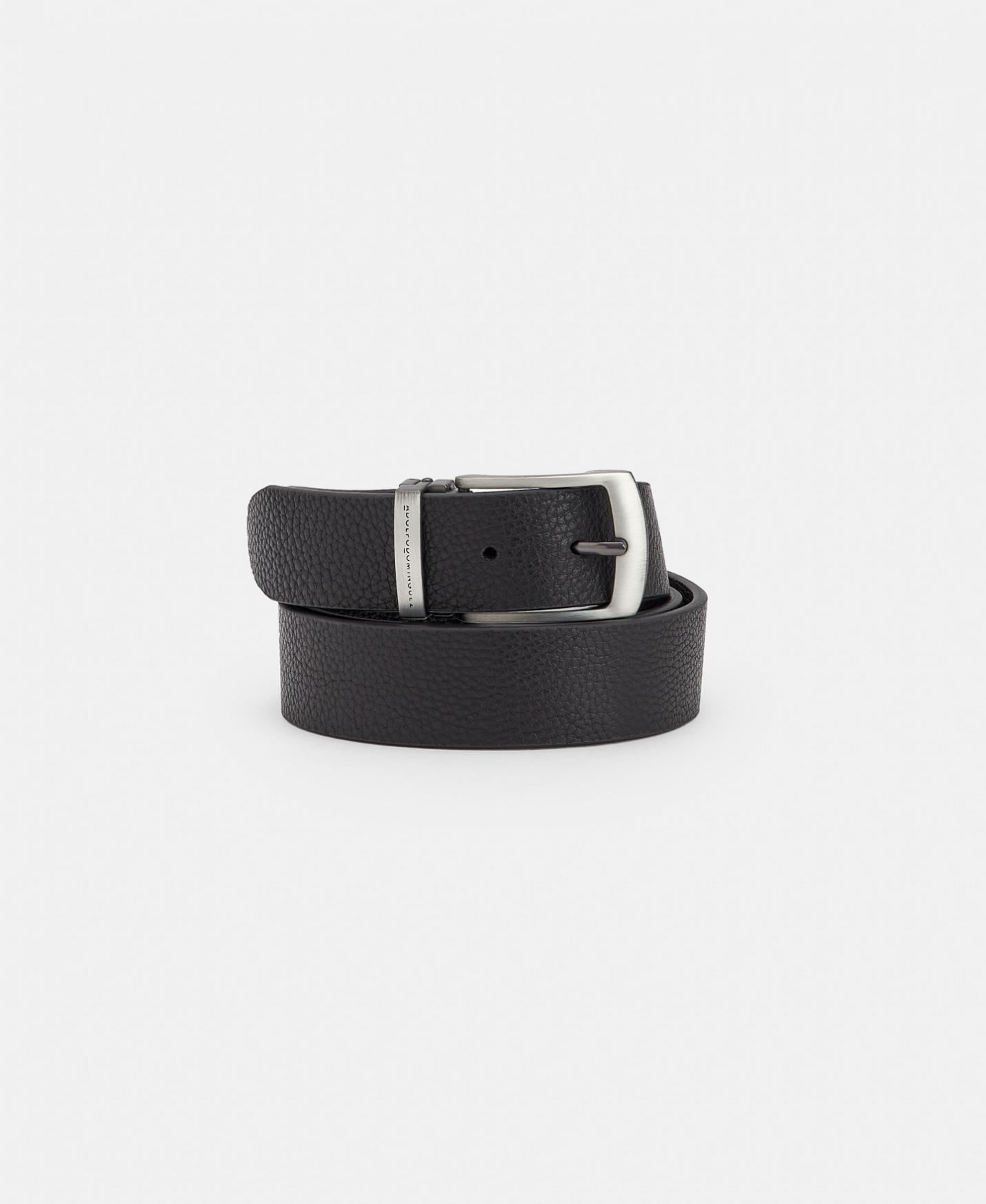 Cinturón en piel bovina con hebilla reversible.