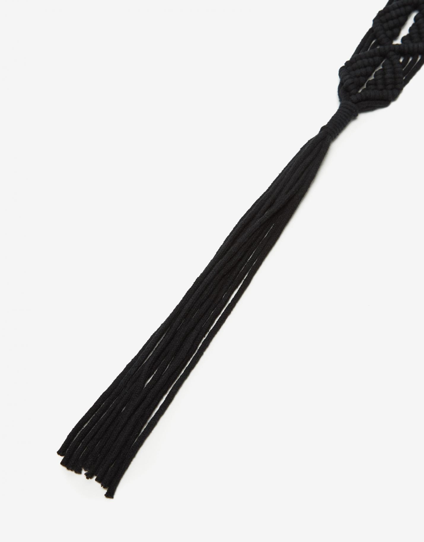 Cinturón de atar hecho a mano en un macramé de algodón negro y rematado con tiras sueltas. Ancho: 4 cm