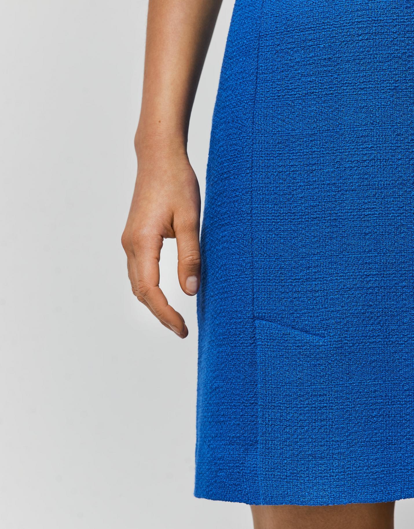 Falda por encima de la rodilla en tweed azul klein. Tabla con aberturas en delantero y cierre con cremallera en centro espalda.