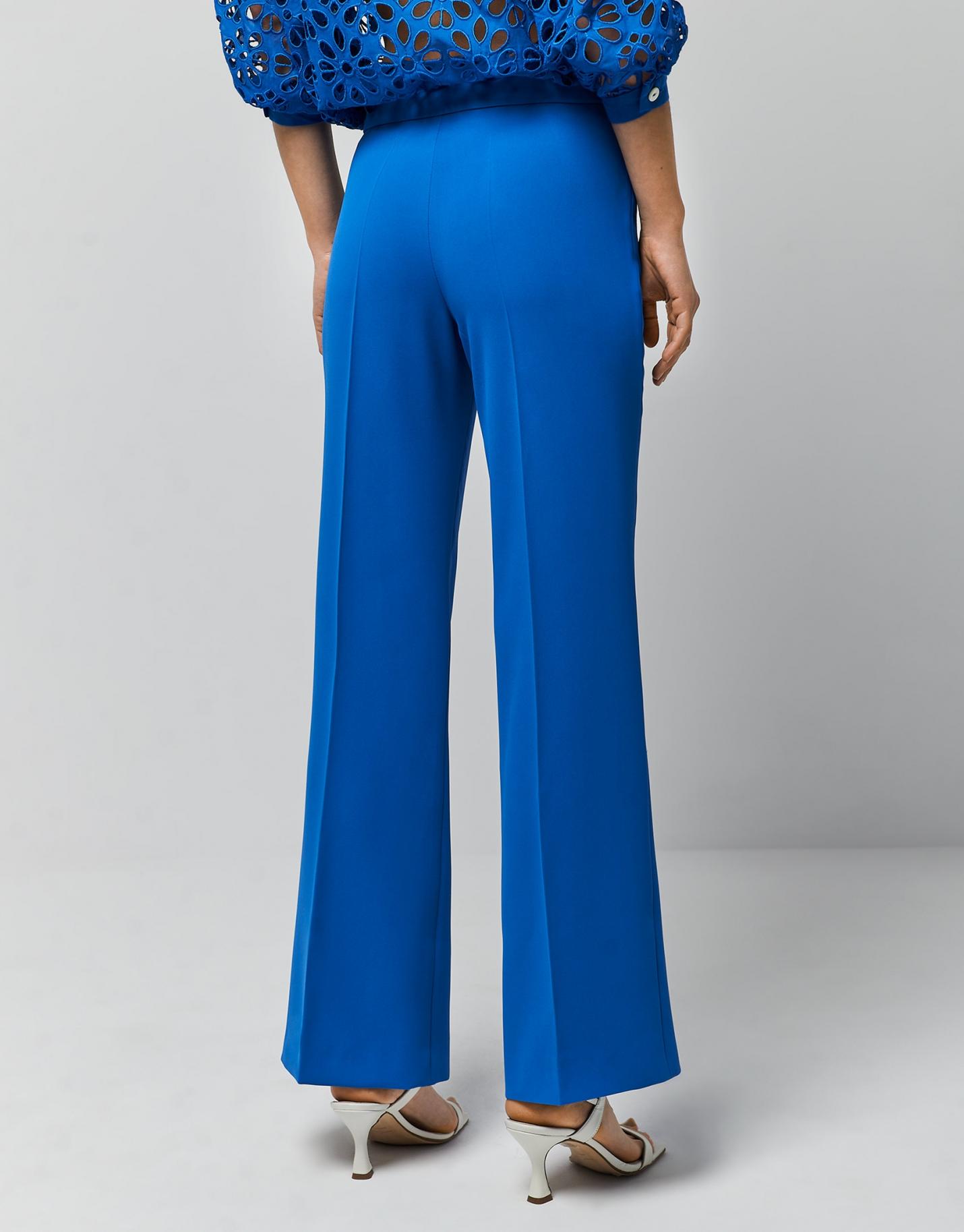 Pantalón recto en crepé color azul klein con cinturilla y cremallera en lateral.