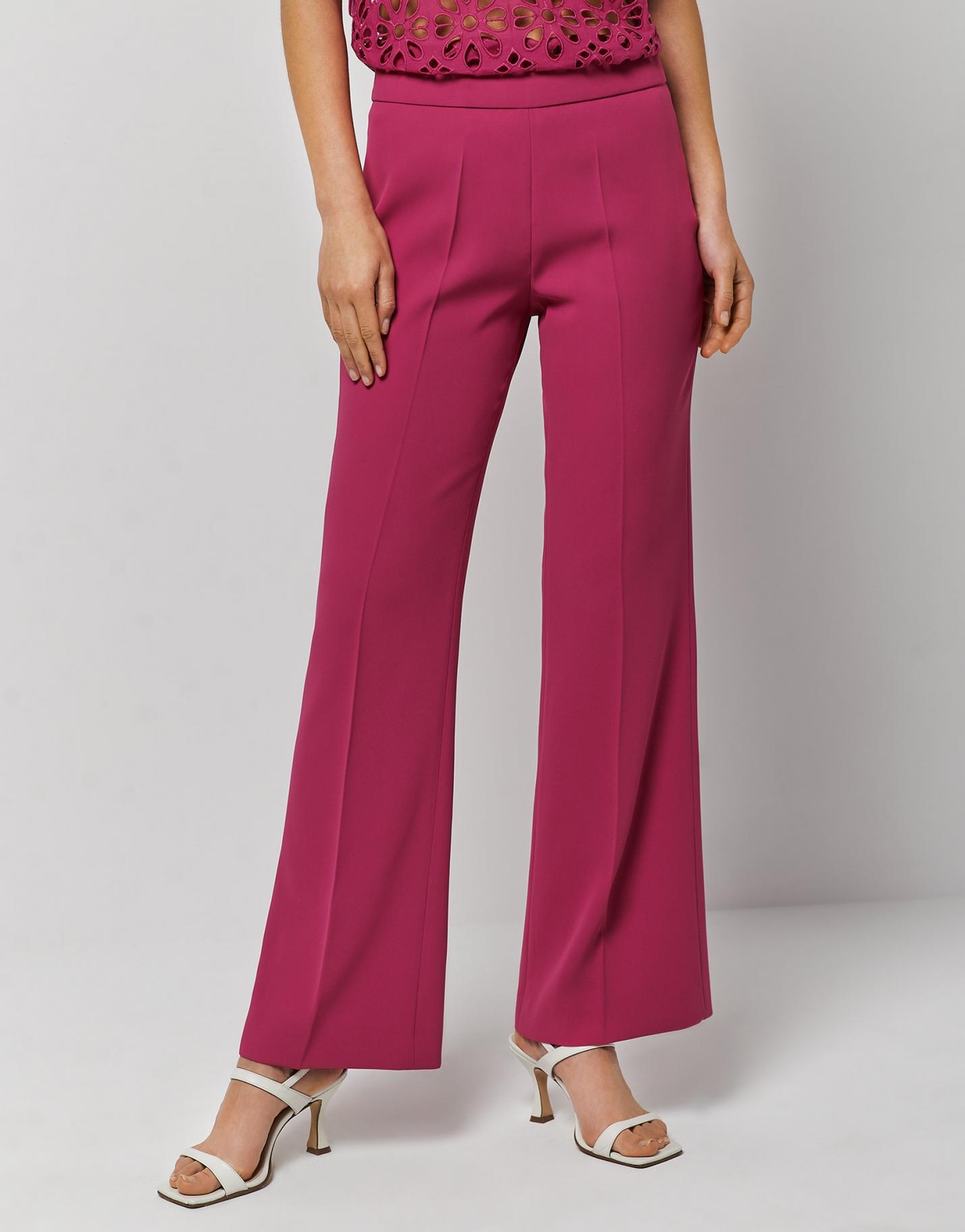 Pantalón recto en crepé color fucsia con cinturilla y cremallera en lateral.