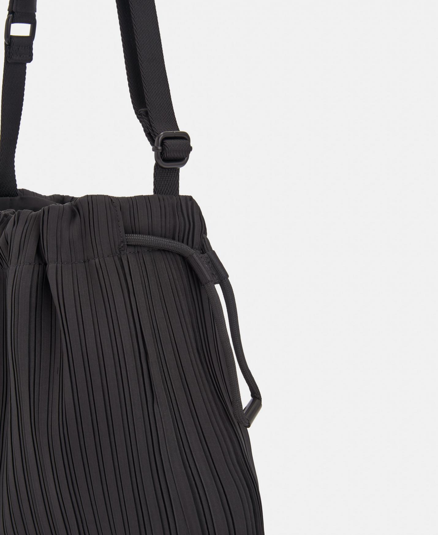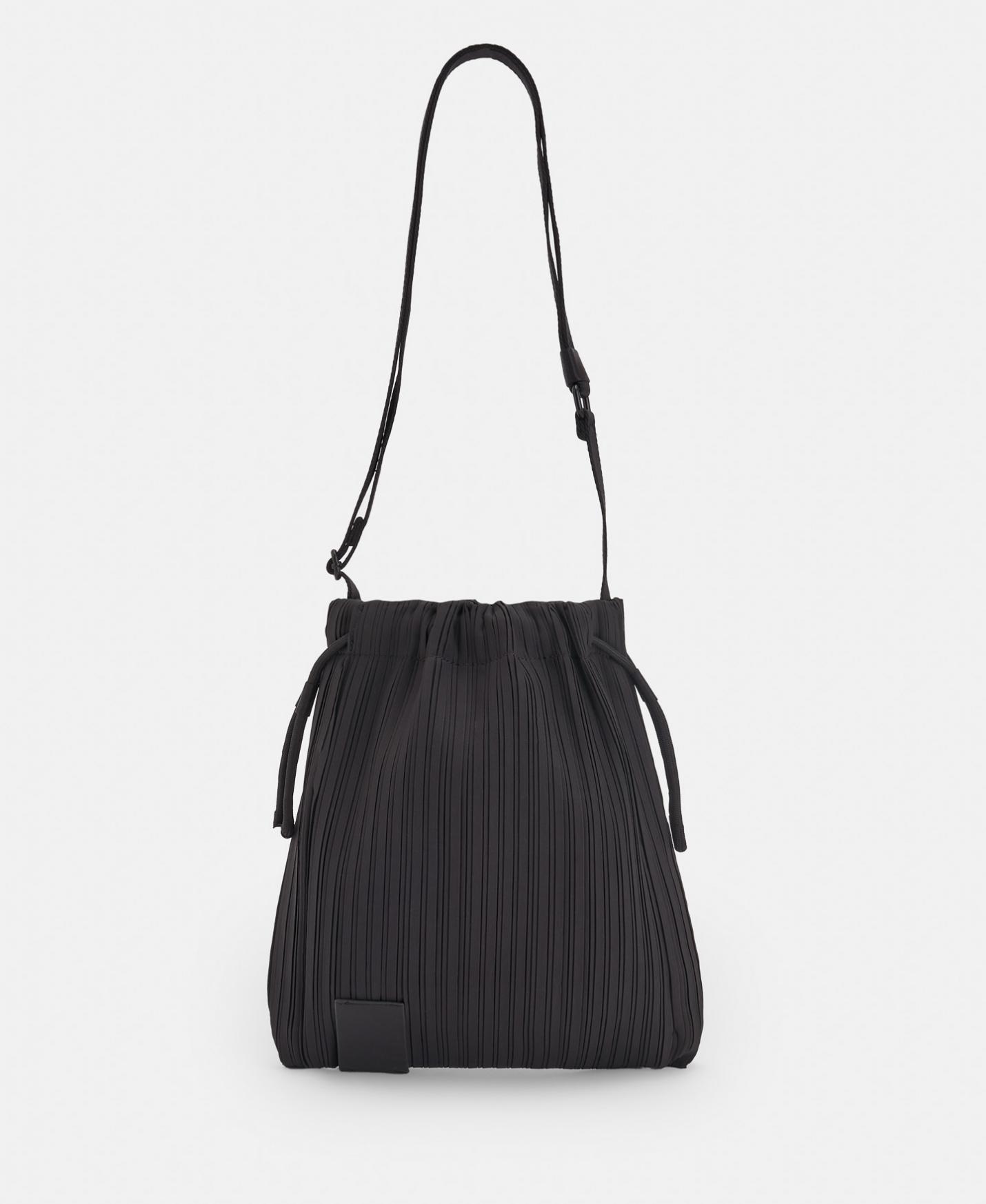 Bandolera pequeña en crinkle. Tiene cierre de estrangulador, asa de hombro regulable, etiqueta logotipada y bolsillo interior con cierre cremallera.
