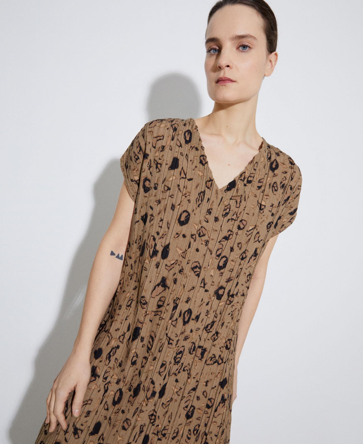 Crinkle Adolfo Dominguez | Vestido corto en crinkle estampado Estampadoanimal Mujer