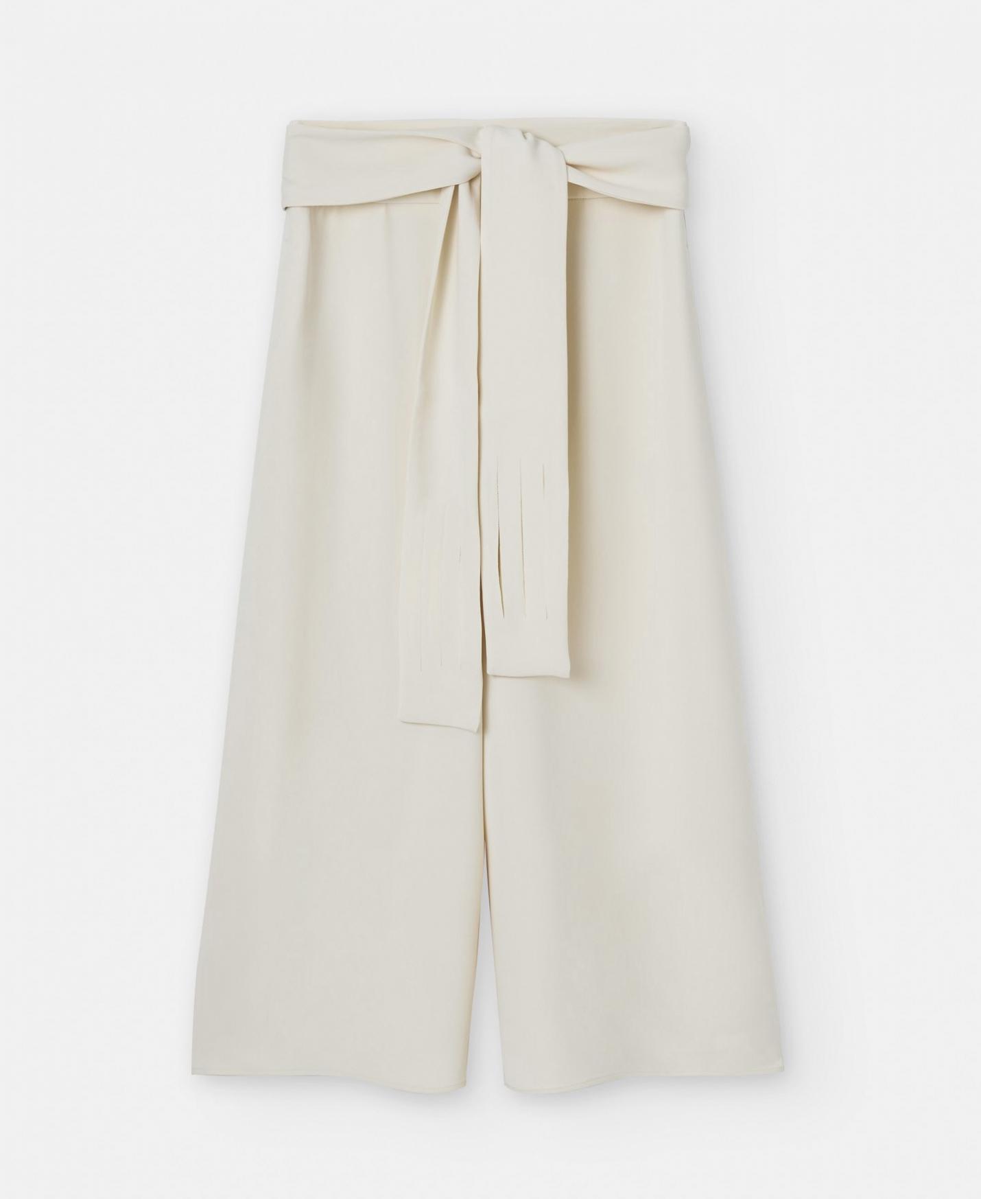 Pantalón palazzo en poliéster reciclado. Corte fluído. Cintura elástica y cinturón largo. Bolsillos laterales ocultos en costura.