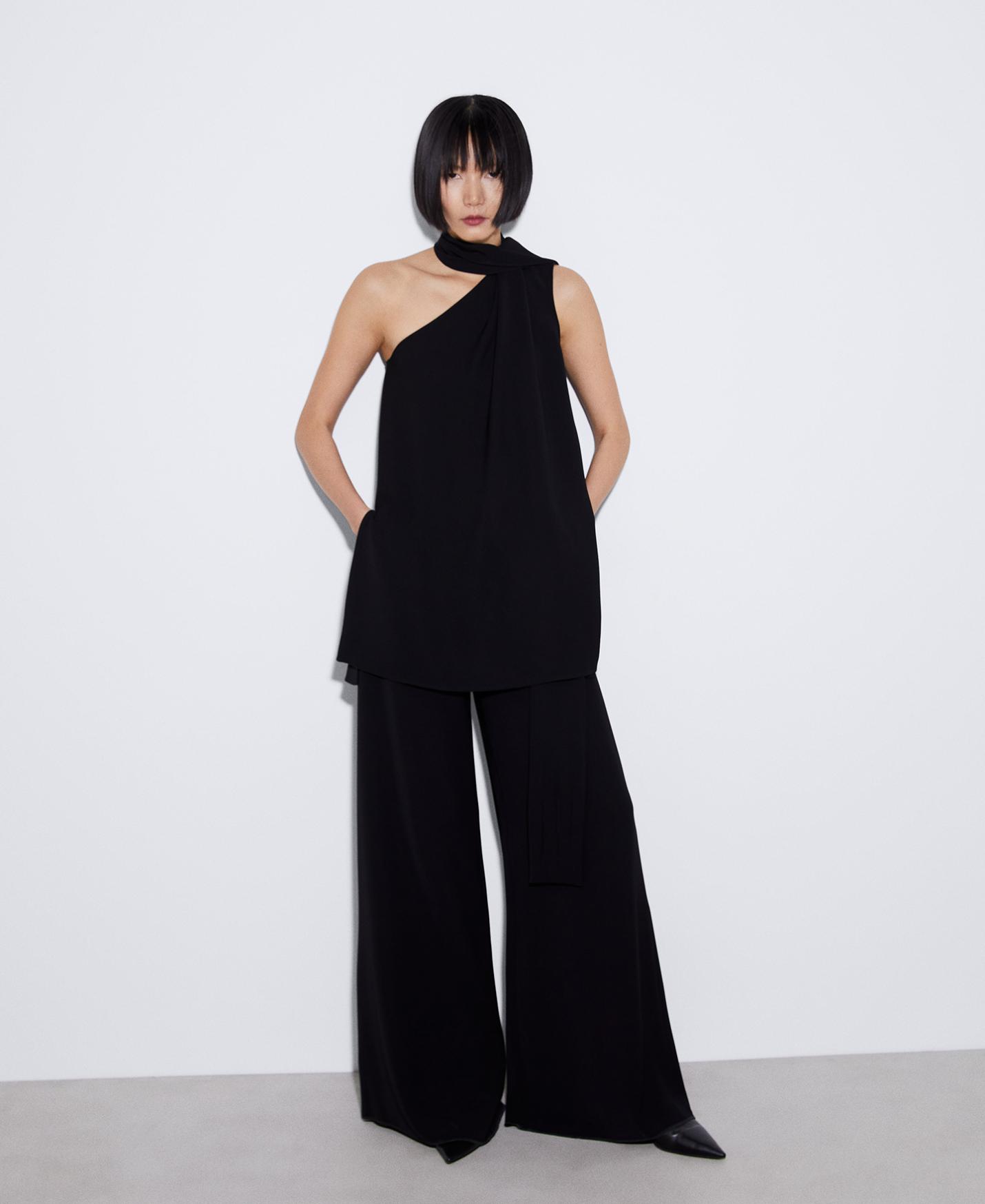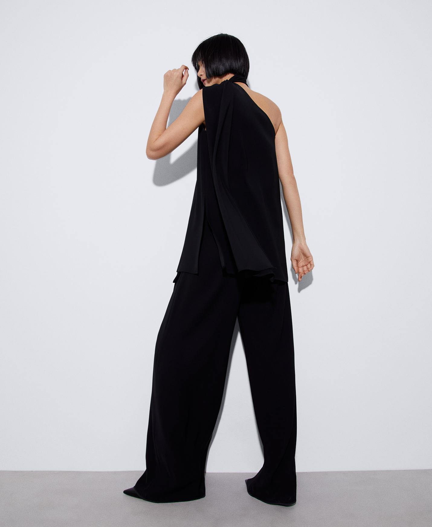 Evento Adolfo Dominguez | Top asimétrico en poliéster reciclado Negro Mujer