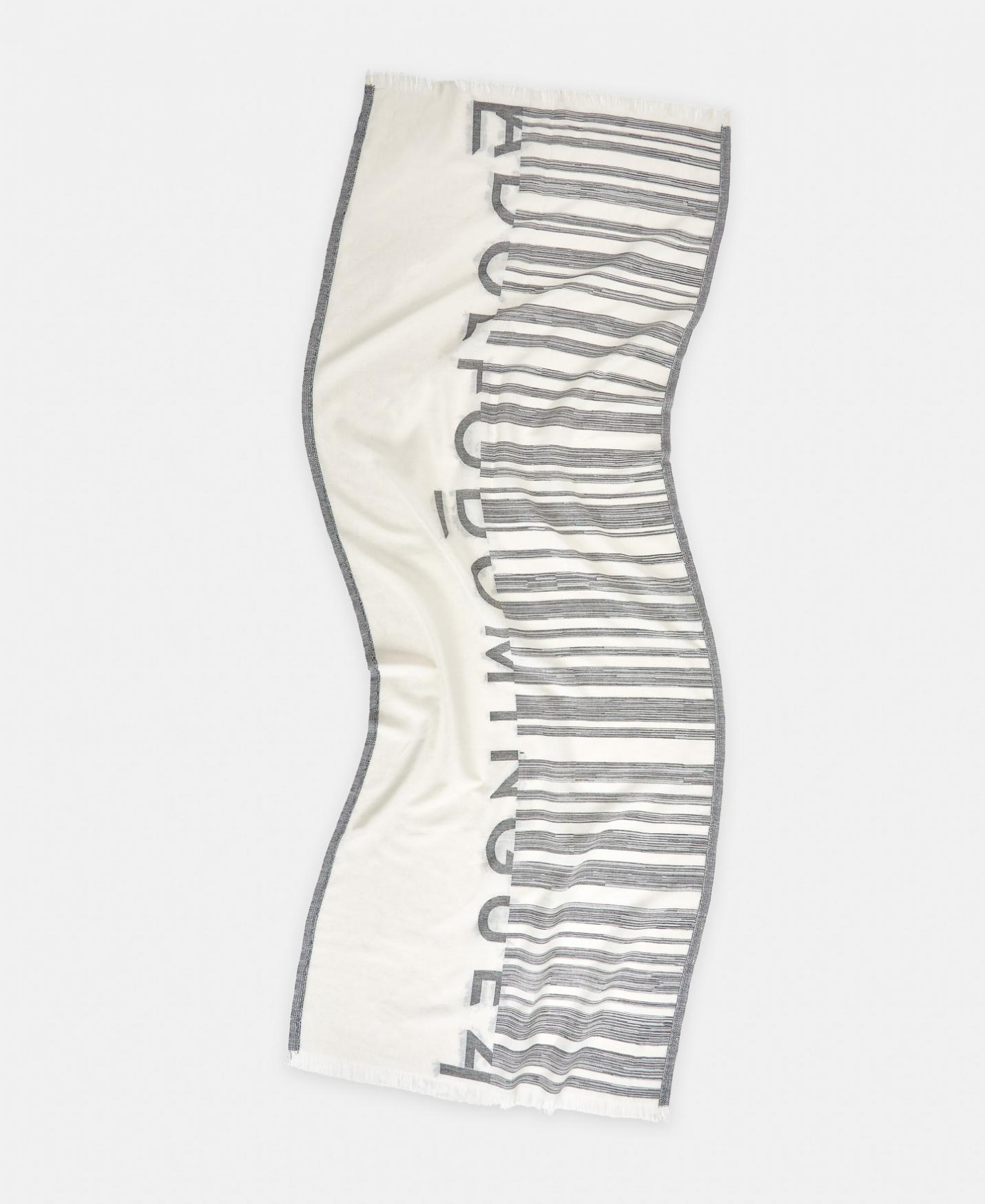 DescripciónRef.232531378121 Chal en algodón orgánico, modal y lino. Con motivo jacquarizado de código de barras y logotipo con técnica cut work. 70 x 180 cm algodón orgánico modal & lino código de b…