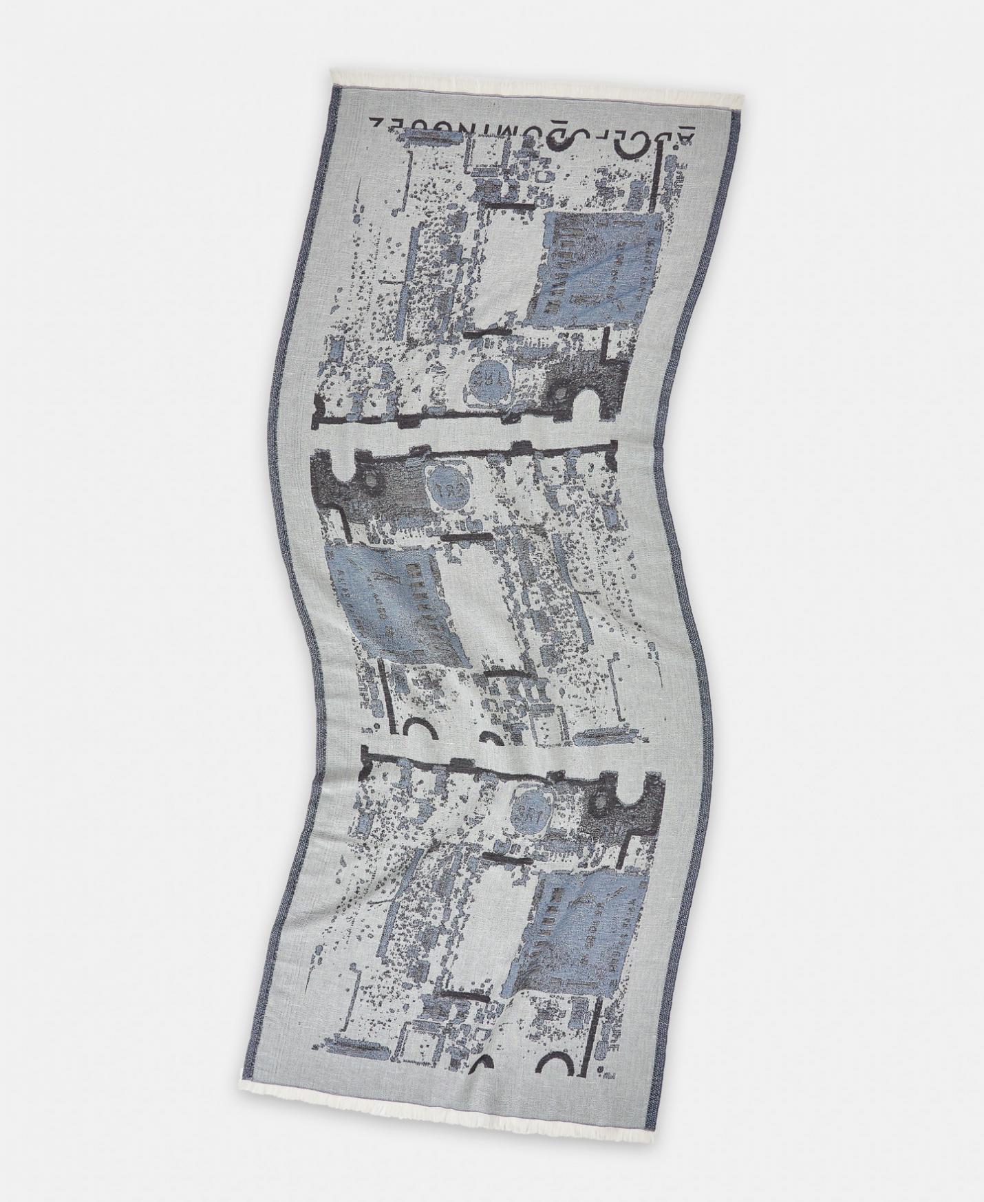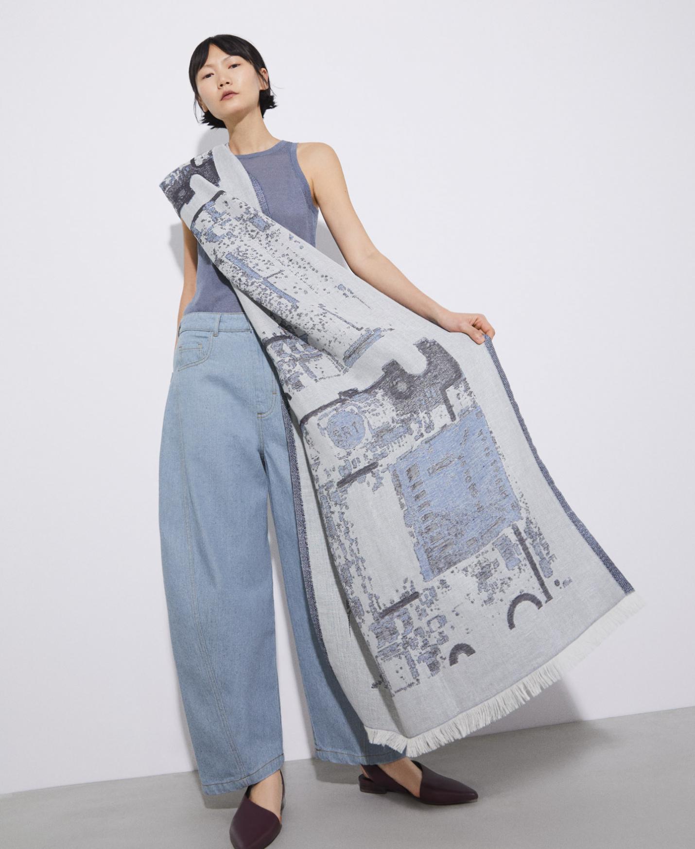 Chal en algodón responsable, modal y lino. Con la técnica jacquard, uno de los motivos de la colección Zeitgeist. Sobre la base, nuestro logotipo.