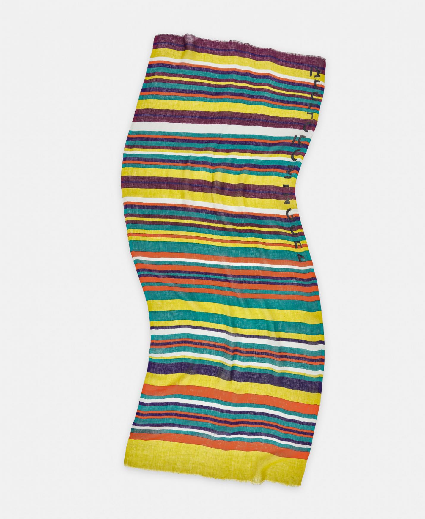 Chal estampado rayas horizontales en lino responsable europeo. Logotipo estampado en lateral.