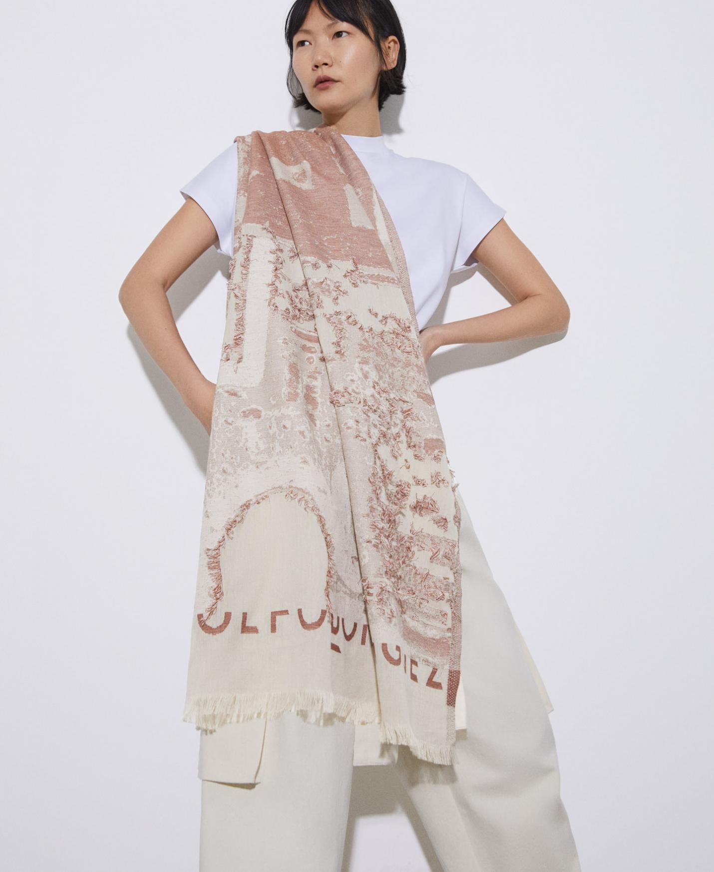 Foulard Adolfo Dominguez | Chal técnica cutwork en algodón orgánico Beige Mujer