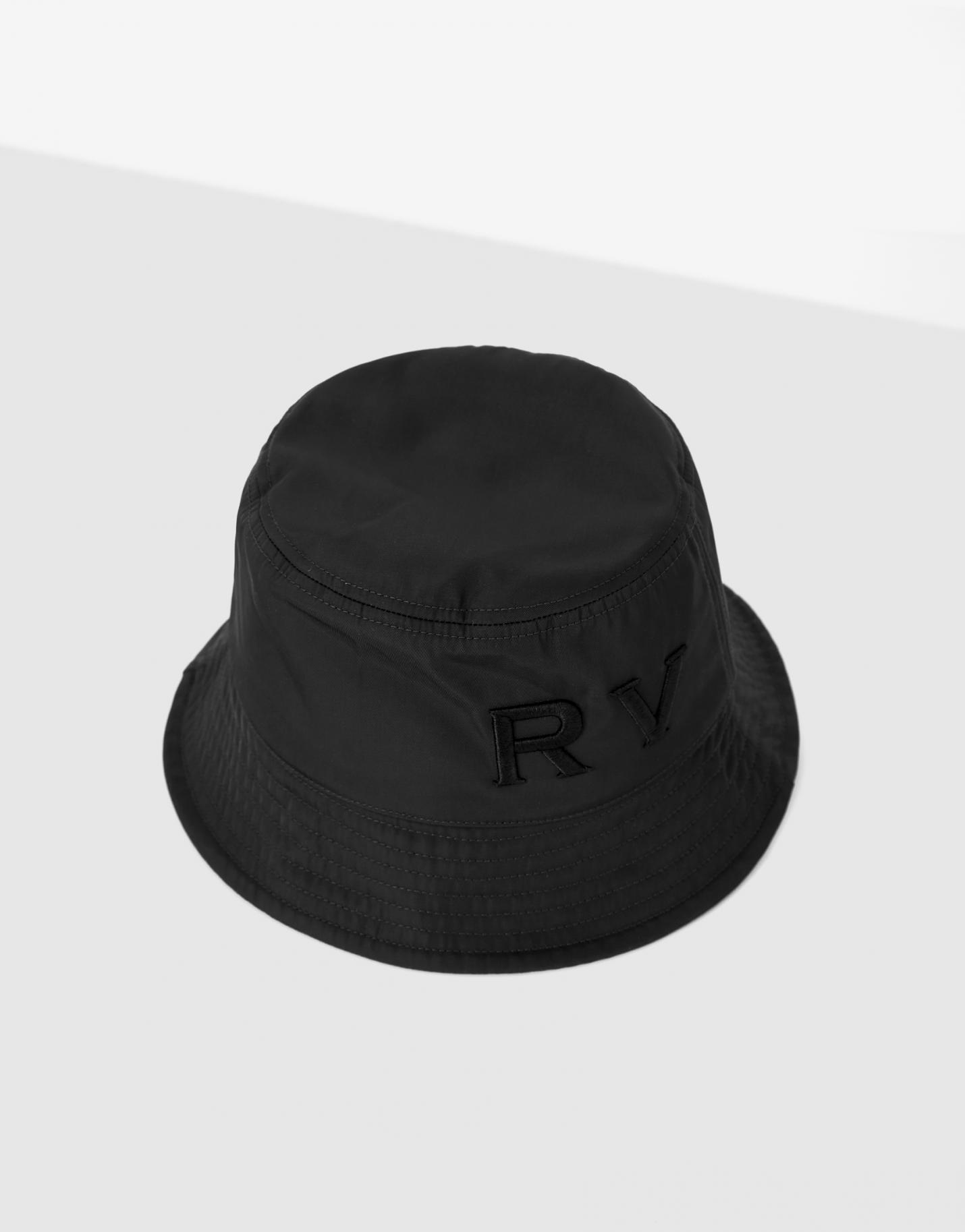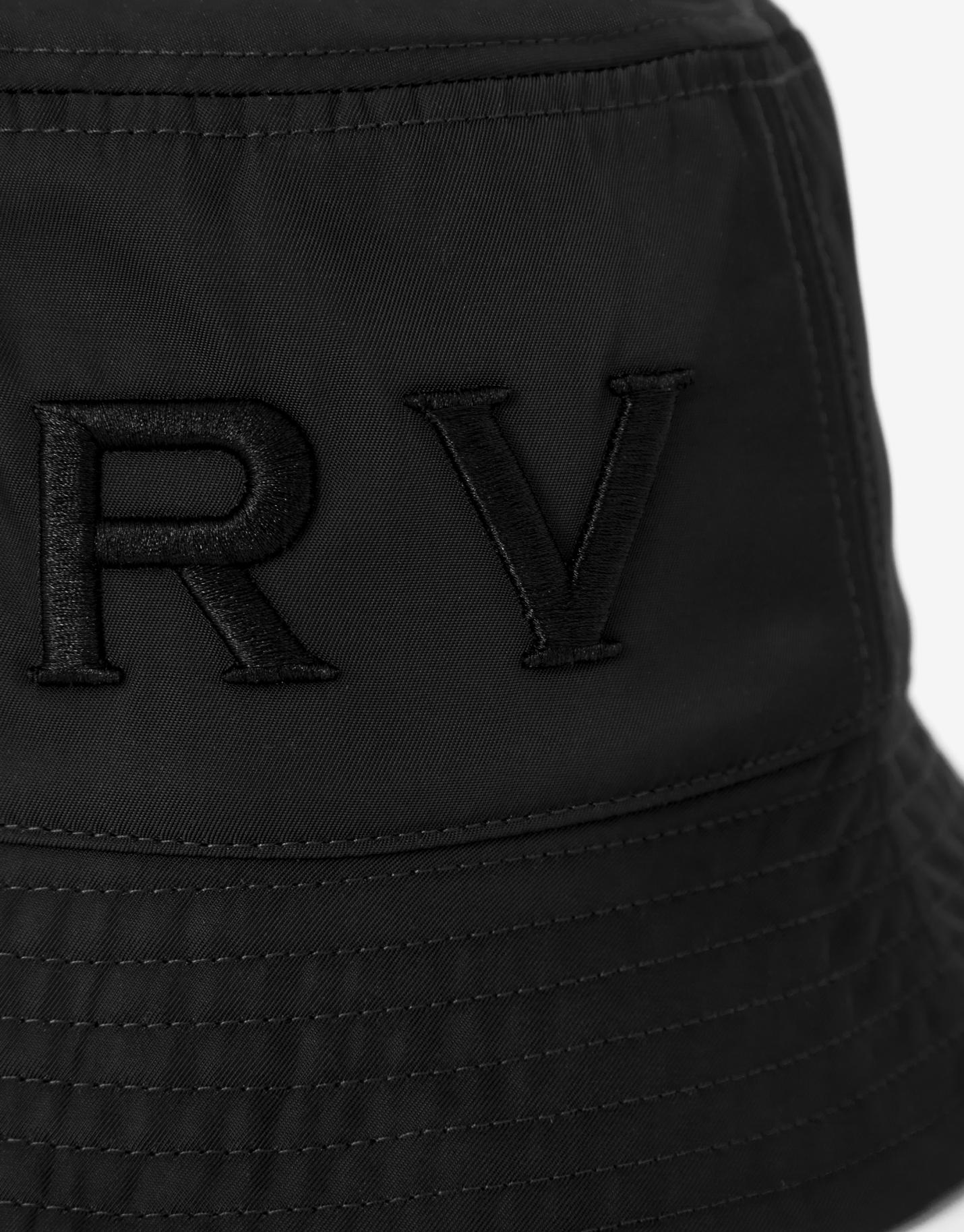 Gorro bucket confeccionado en un tejido técnico de nailon color negro con interior forrado en tejido tipo paño. Maxi logo RV bordado en lateral a tono.