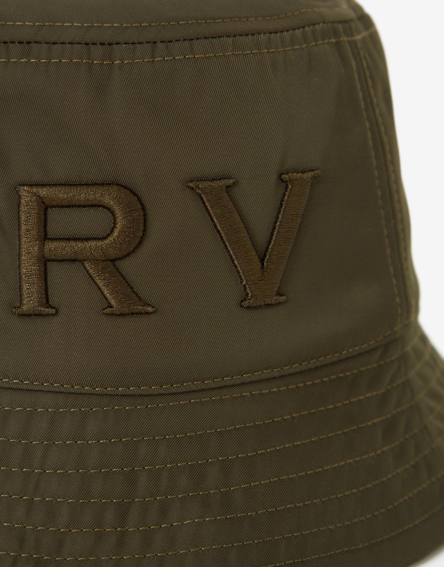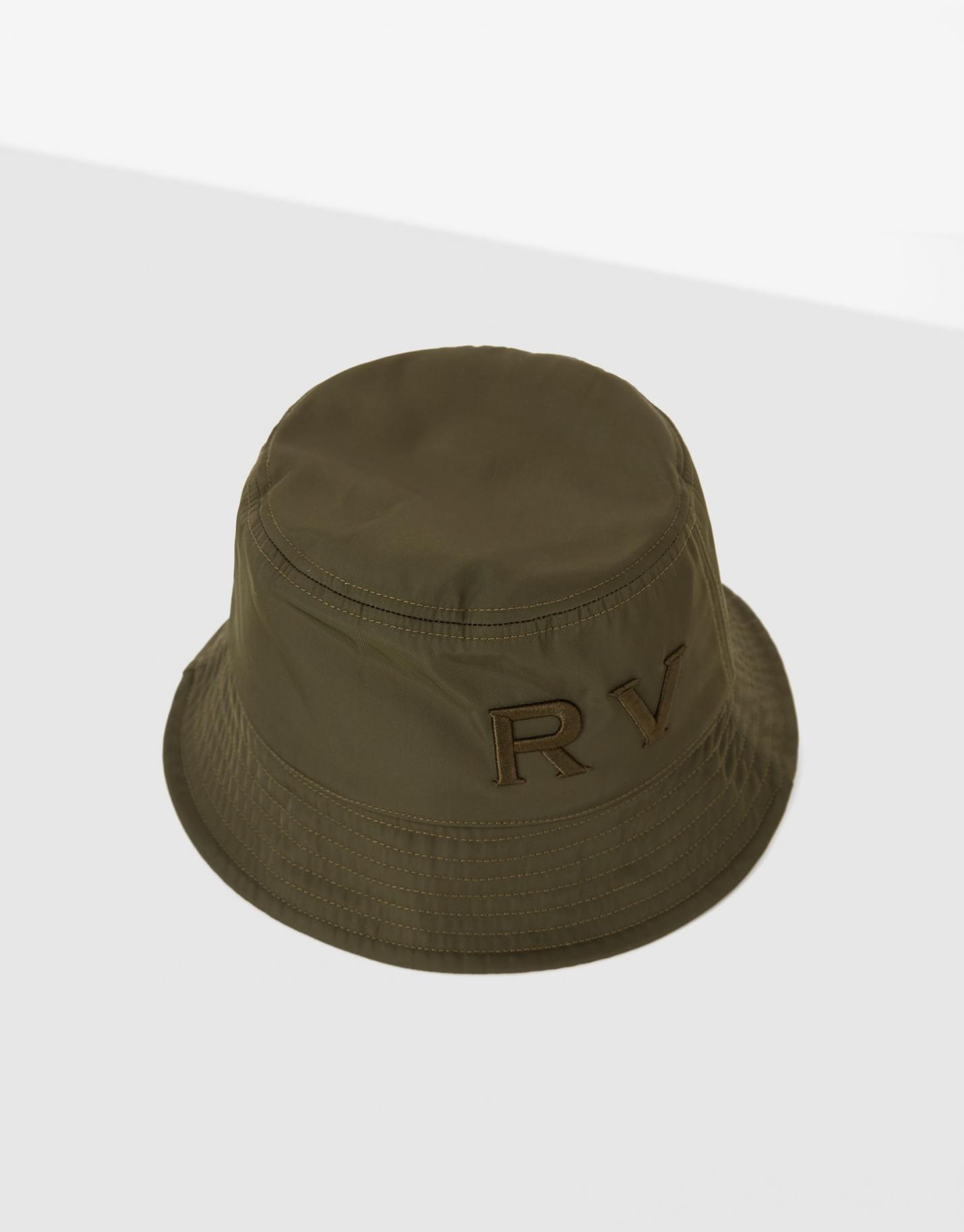 Gorro bucket confeccionado en un tejido técnico de nailon color verde caza con interior forrado en tejido tipo paño. Maxi logo RV bordado en lateral a tono.