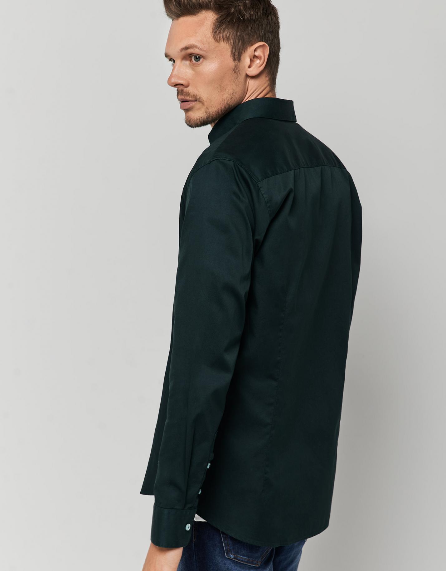 Camisa sport en twill de algodón tintado en color verde. Corte regular fit, cuello pico con botón, cierre mediante botonadura frontal…