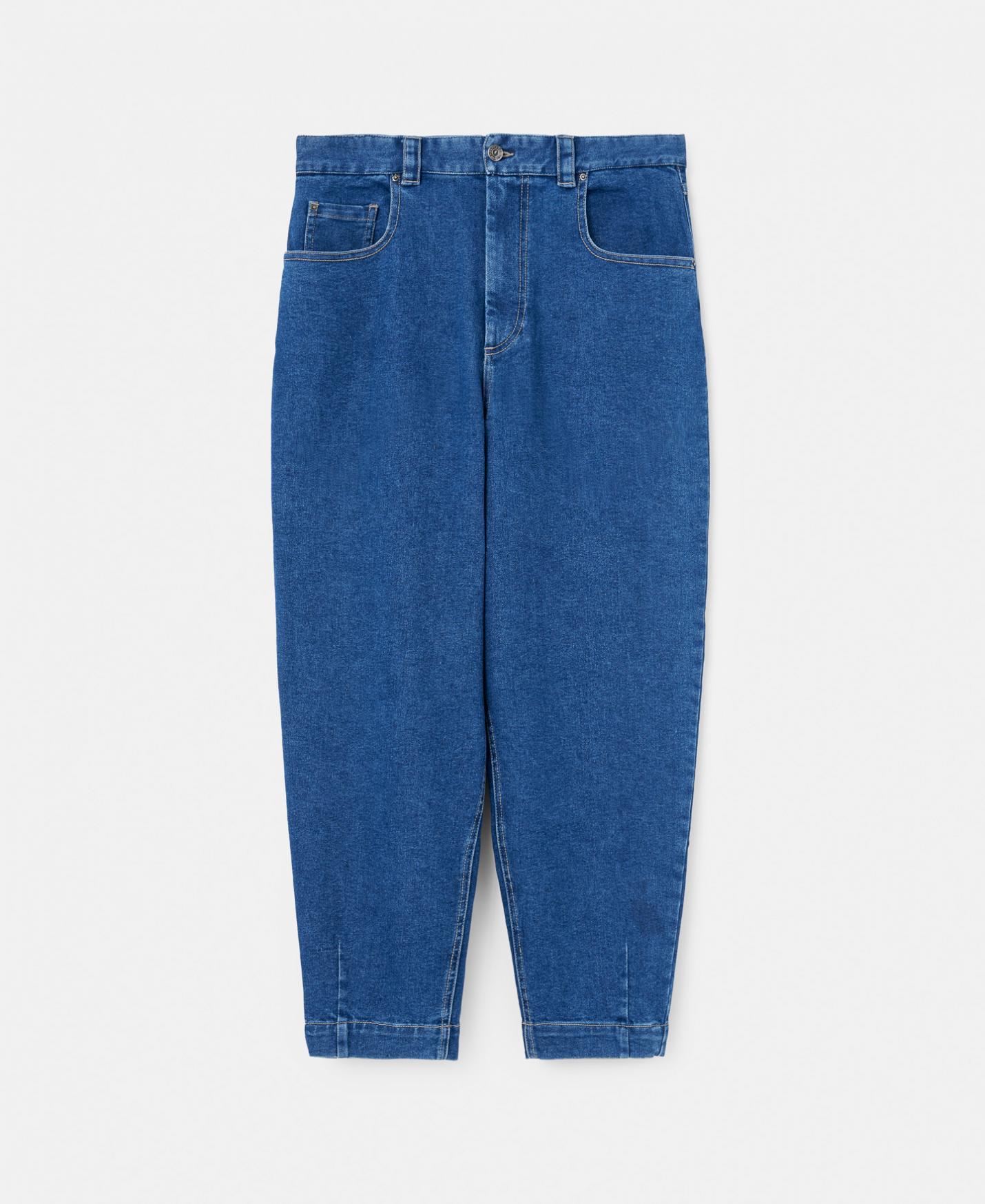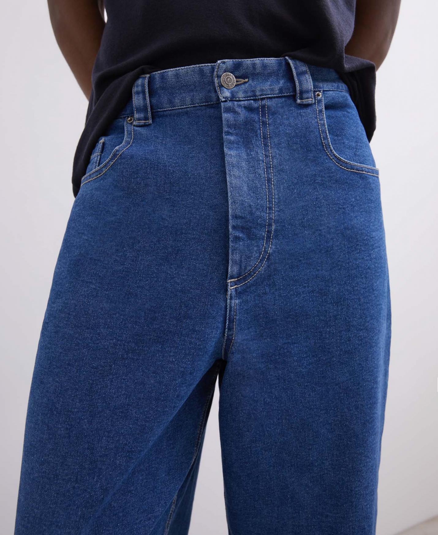 Pantalón vaquero corte zanahoria en algodón. Cinco bolsillos. Cierre botón y cremallera. Tobillero.