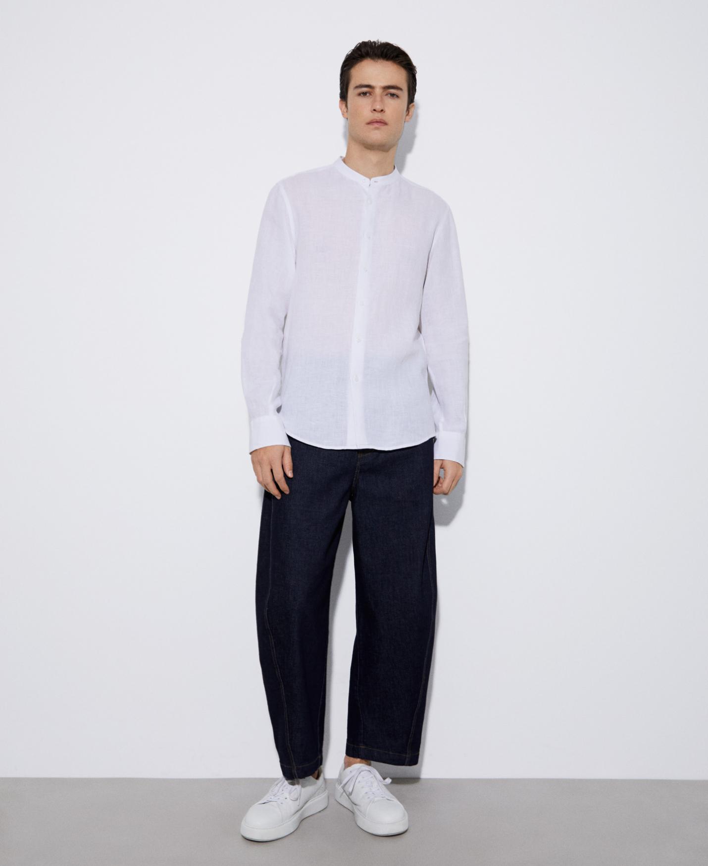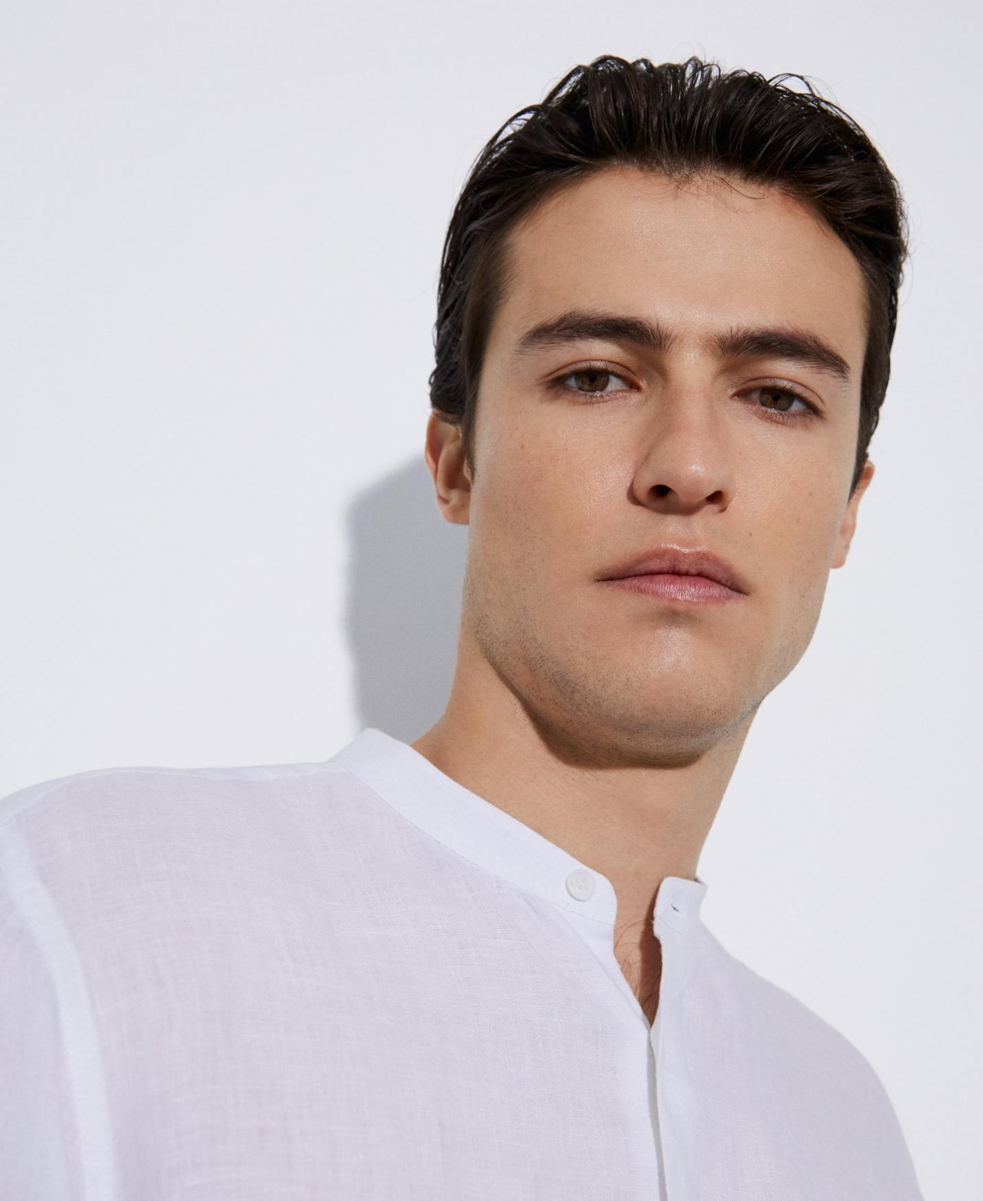 Camisa en 100% lino. Abotonada, con cuello Mao y manga larga.