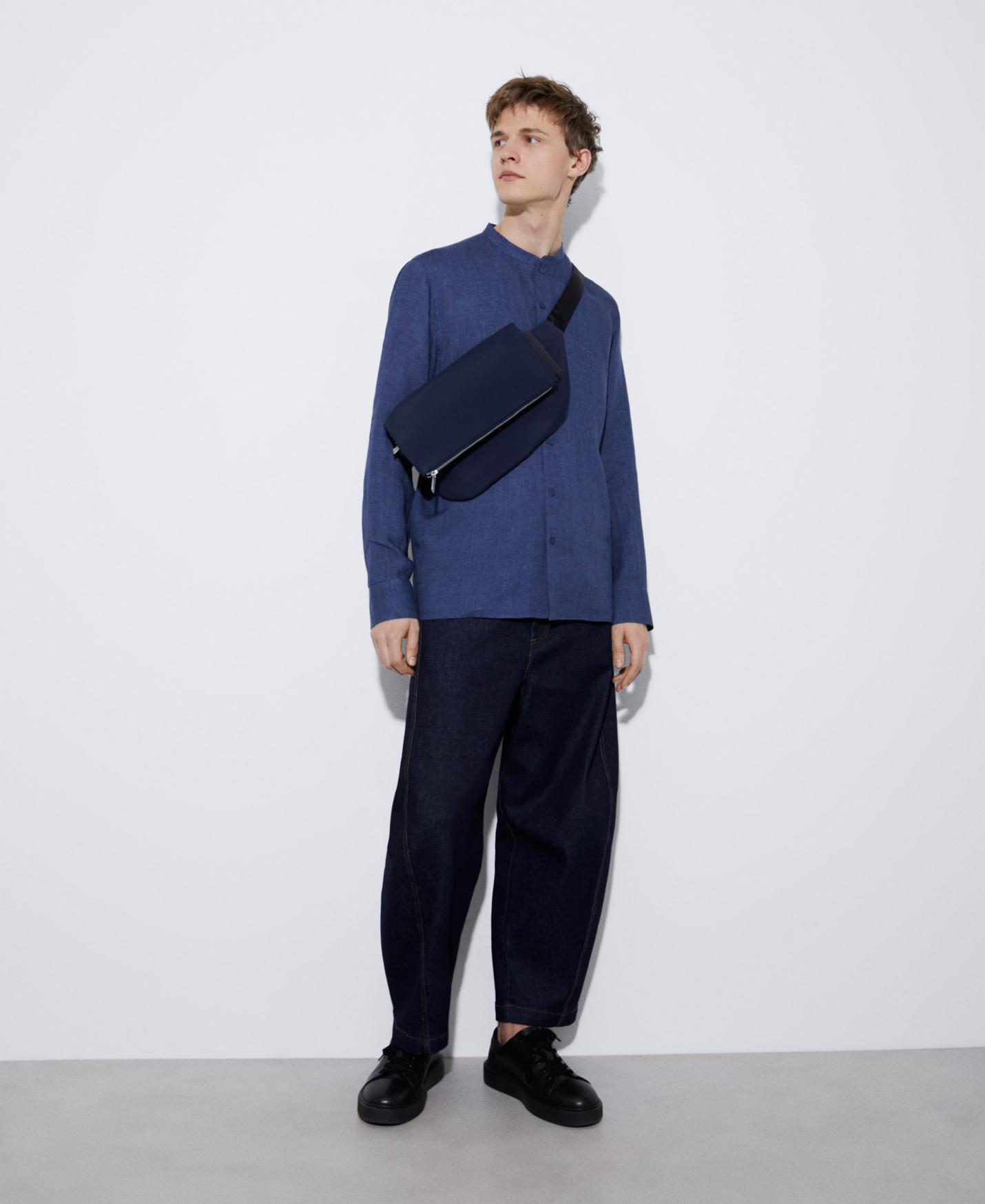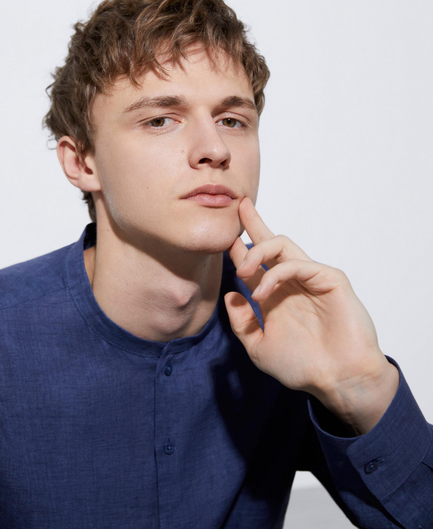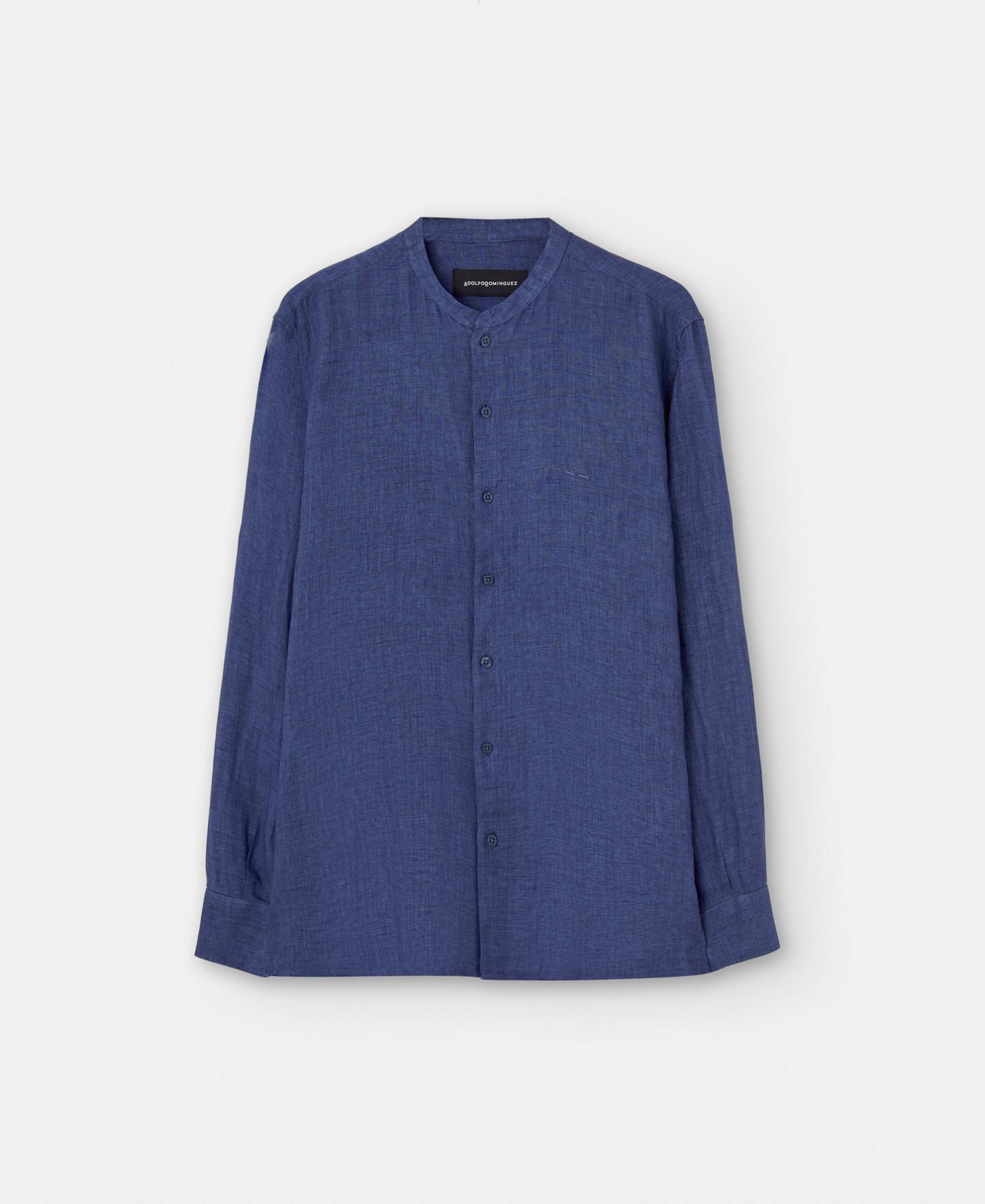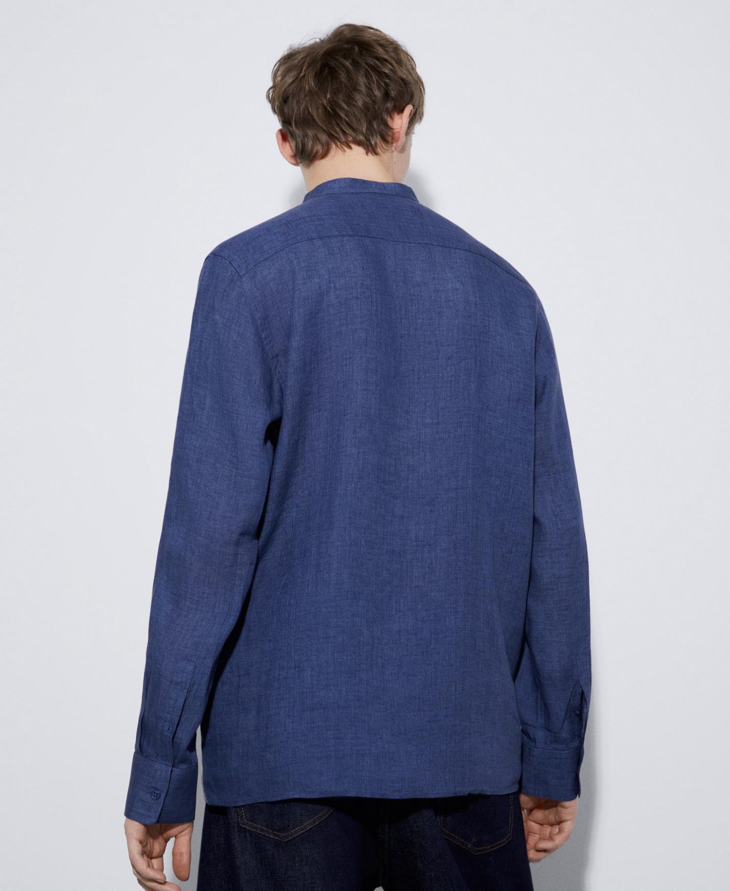 Lino Adolfo Dominguez | Camisa cuello Mao en lino natural Grisazul Hombre
