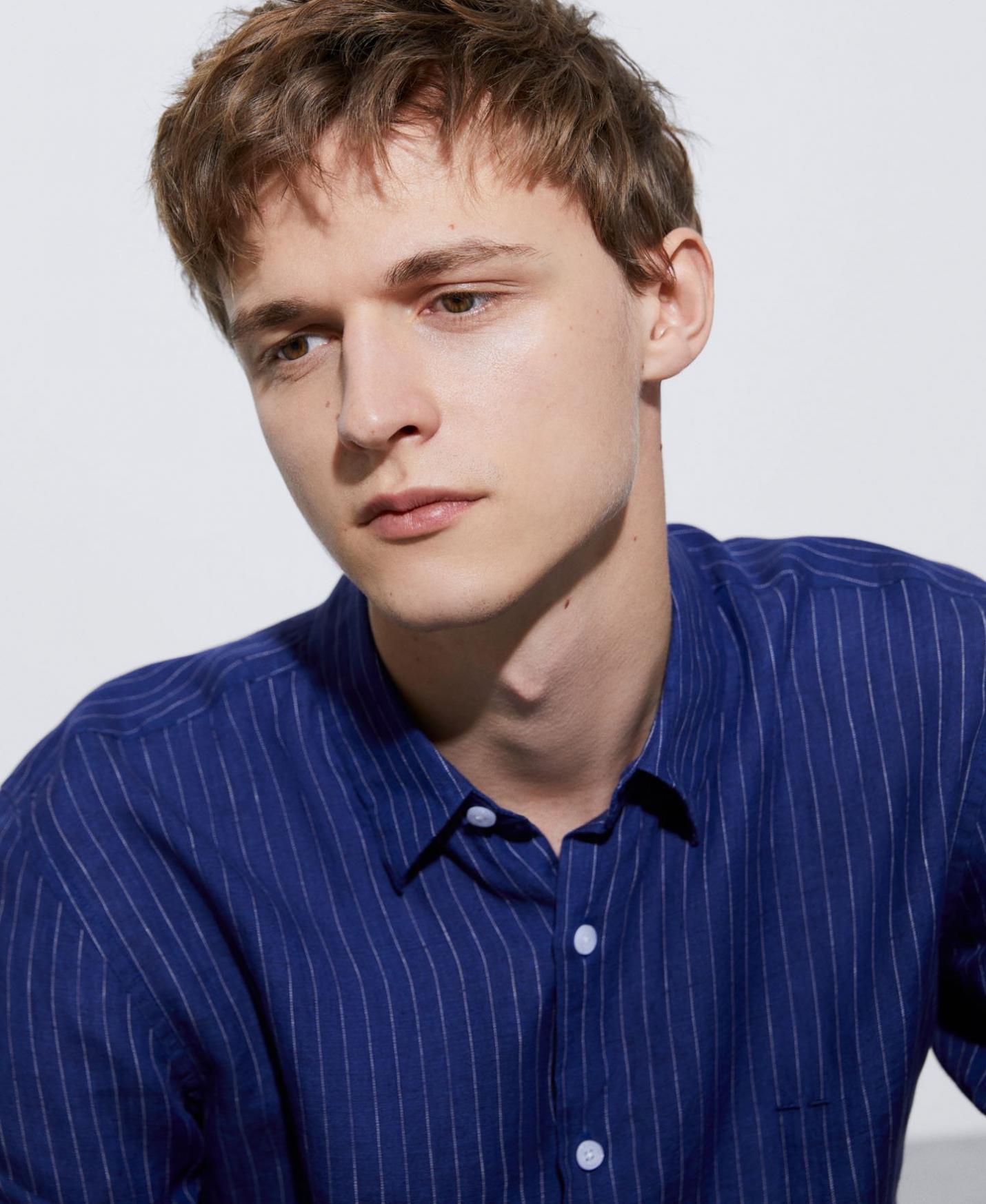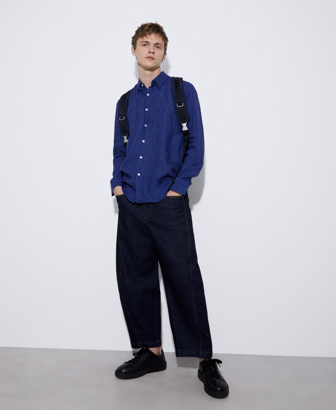 Lino Adolfo Dominguez | Camisa cuello solapa 100% lino Azulrayas Hombre
