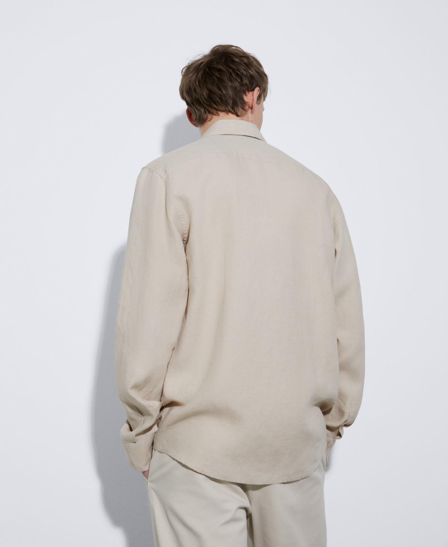 Lino Adolfo Dominguez | Camisa cuello solapa en lino Crudo Hombre