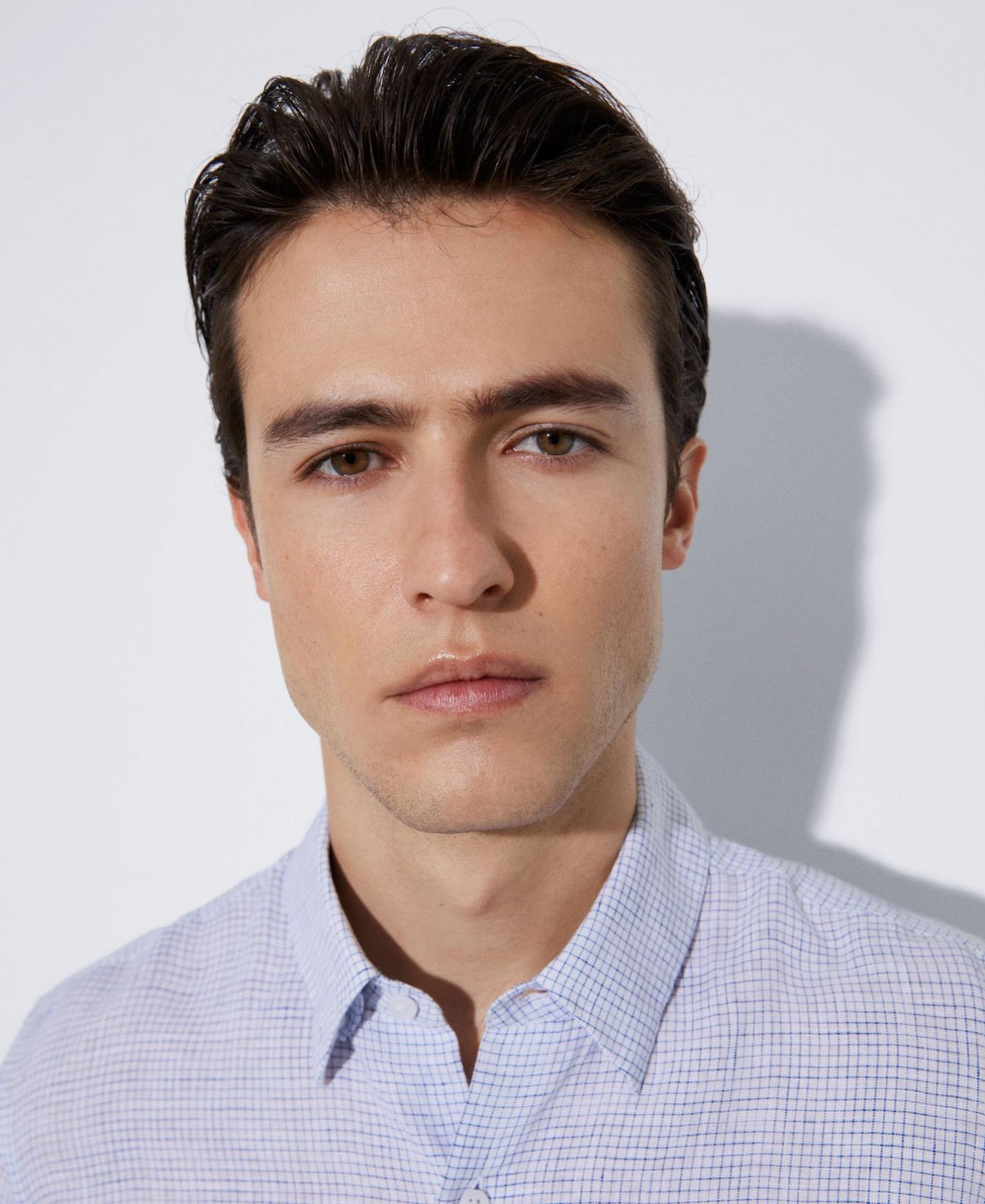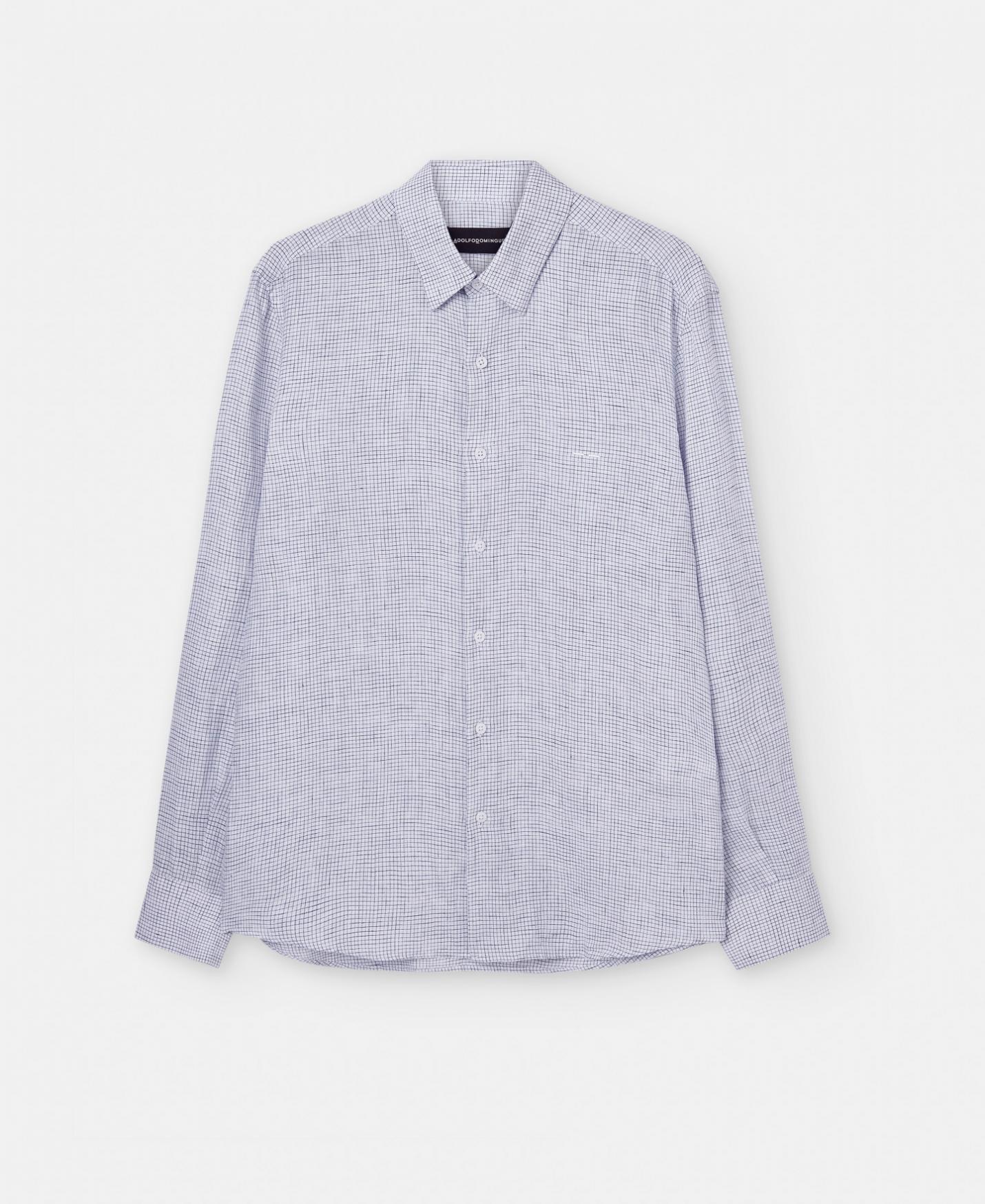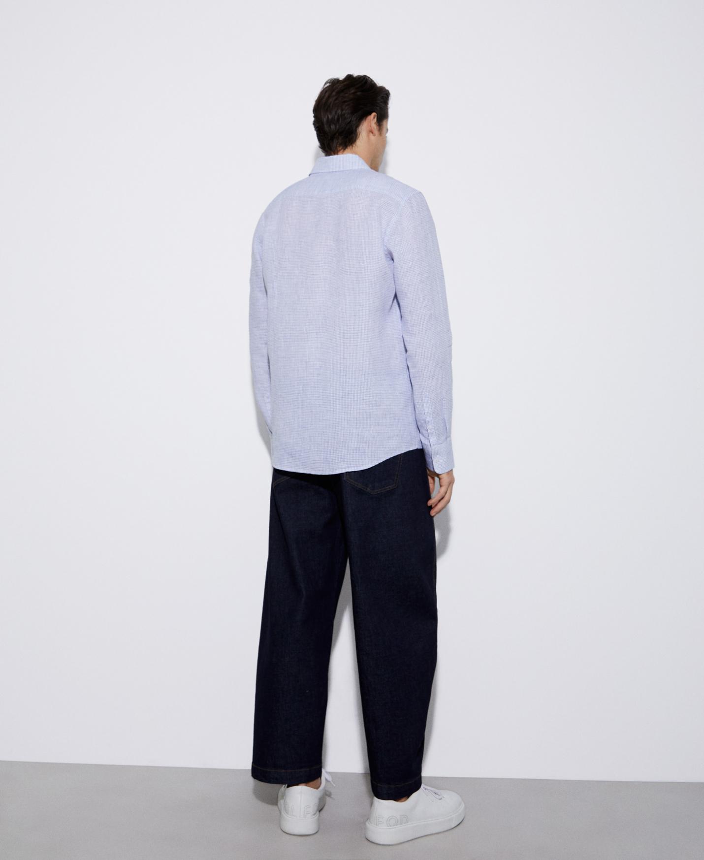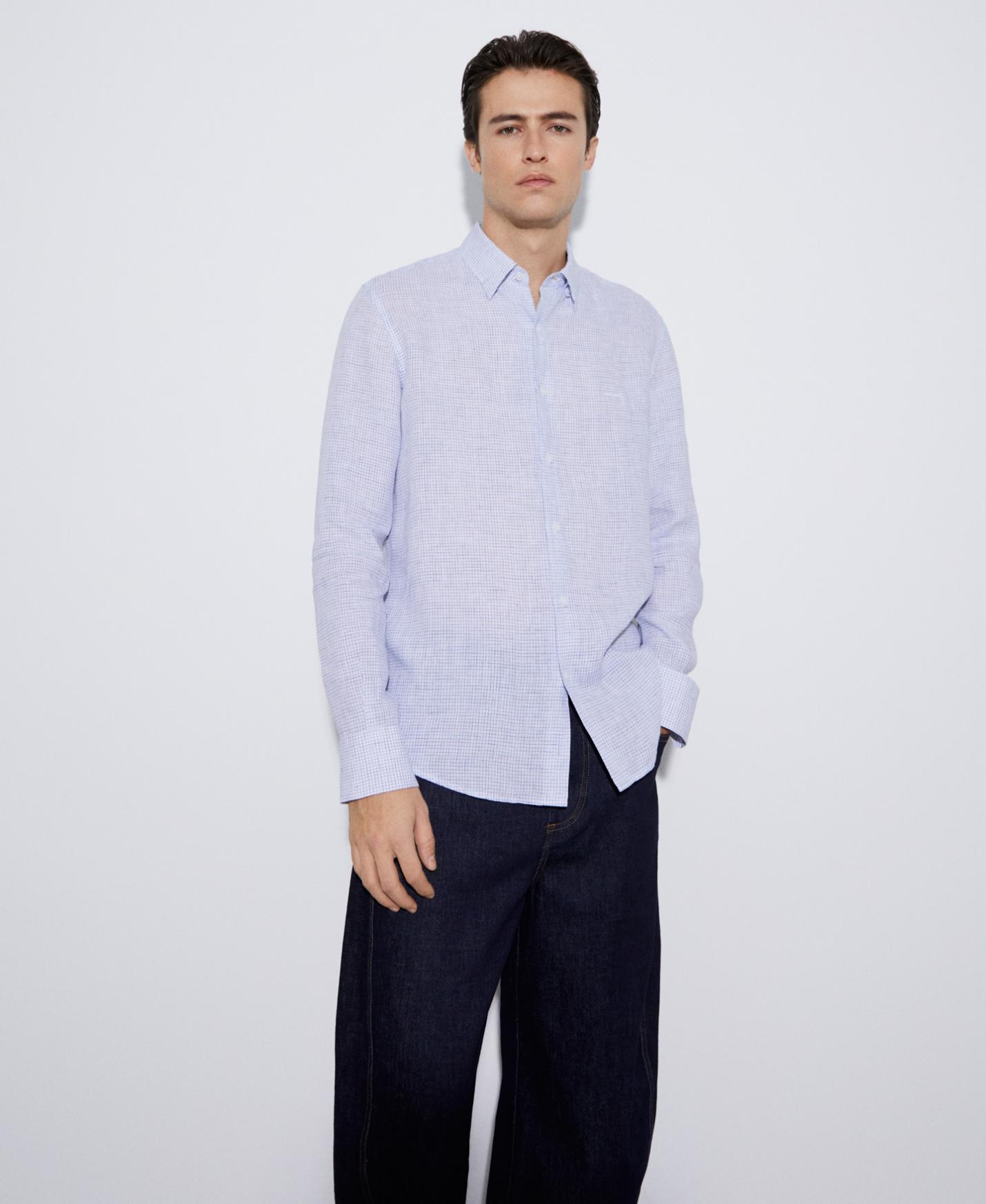 Lino Adolfo Dominguez | Camisa cuello solapa en lino estampado Azulcuadros Hombre