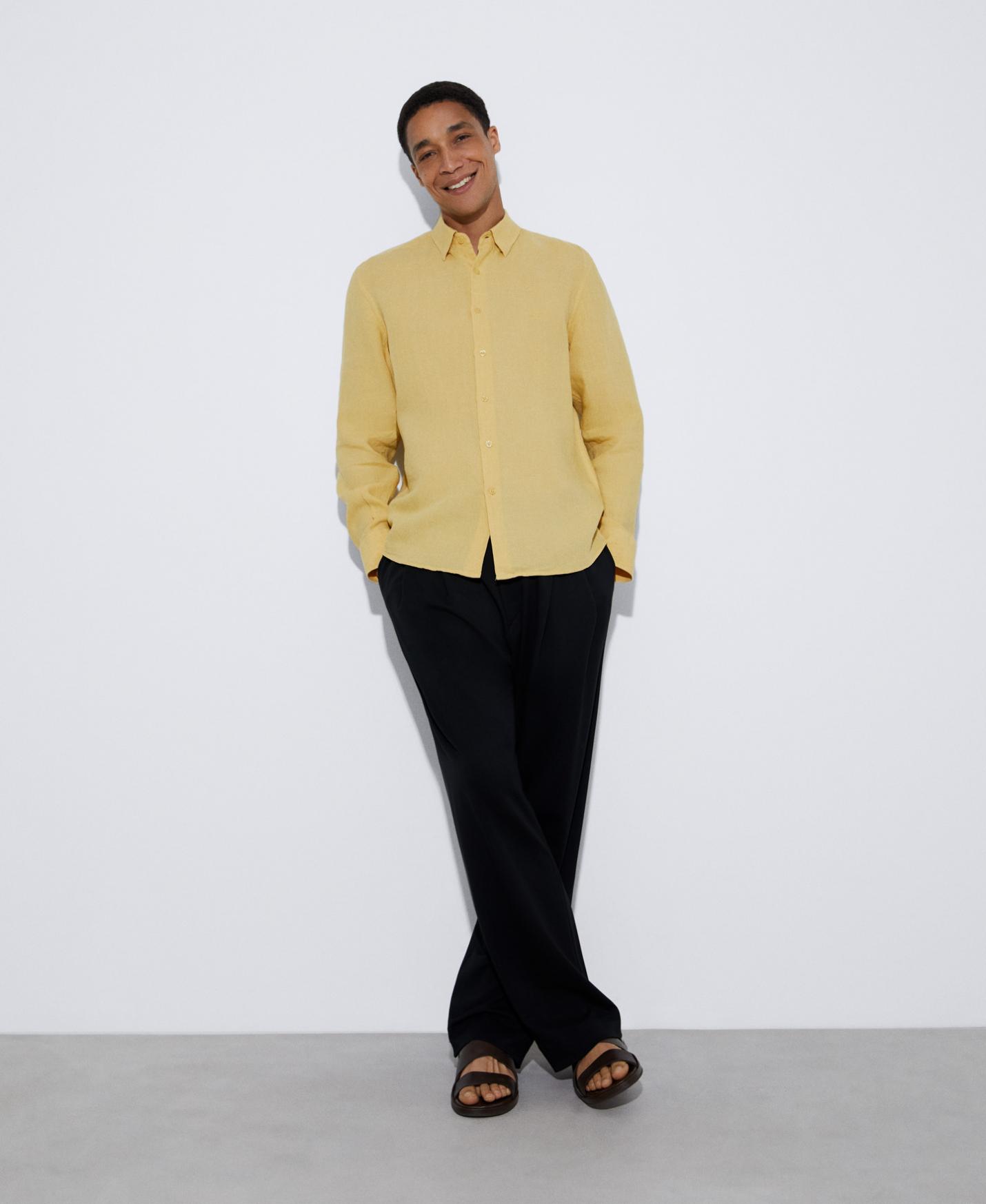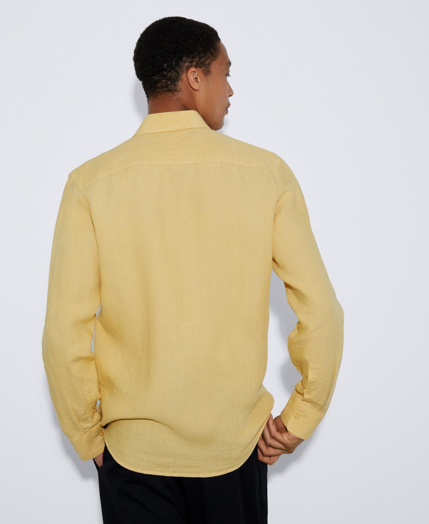 Lino Adolfo Dominguez | Camisa cuello solapa en lino natural Amarillo Hombre