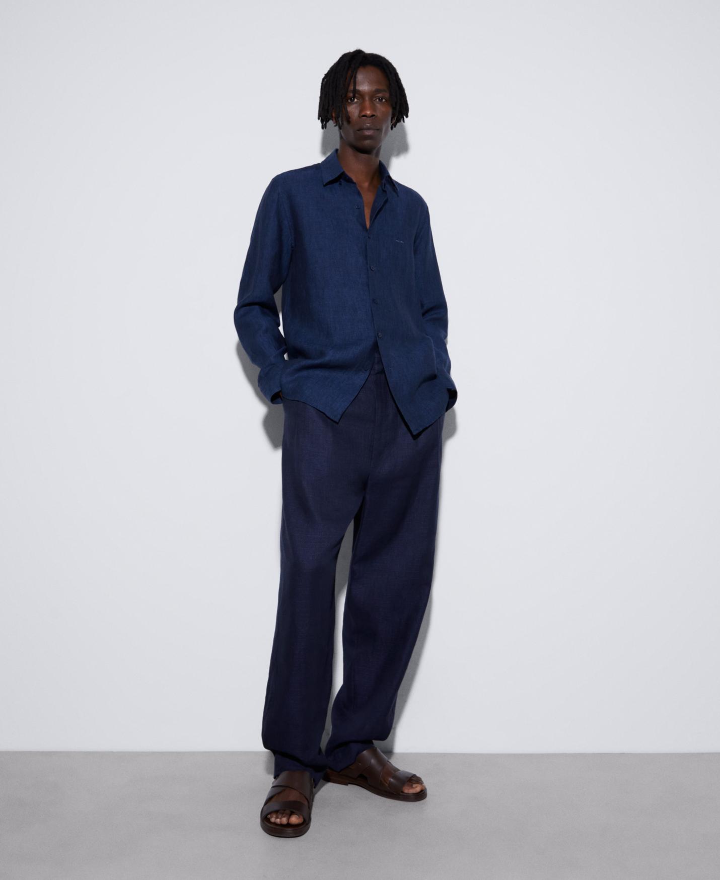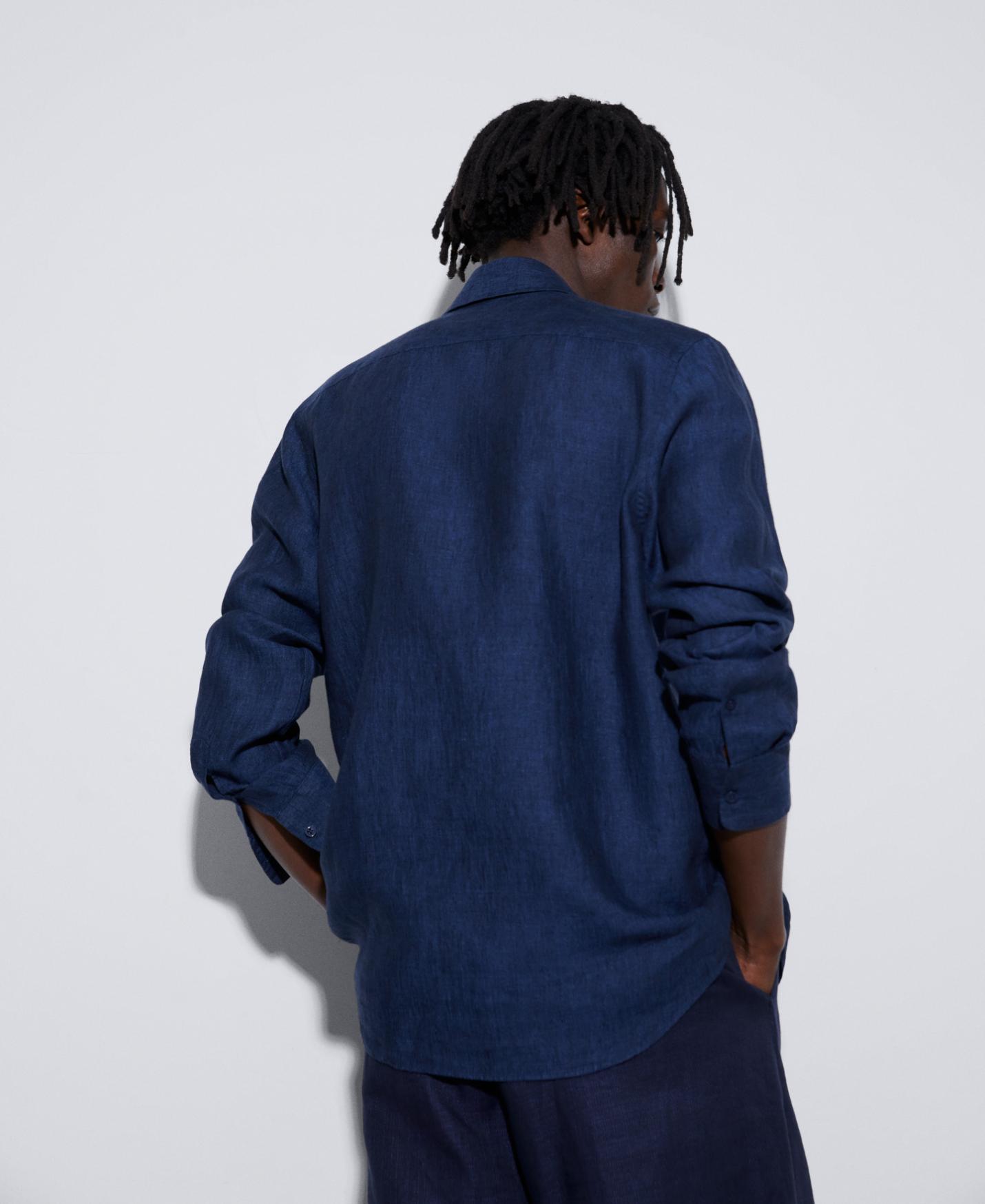 Lino Adolfo Dominguez | Camisa manga larga en lino Azulmarino/Negro Hombre