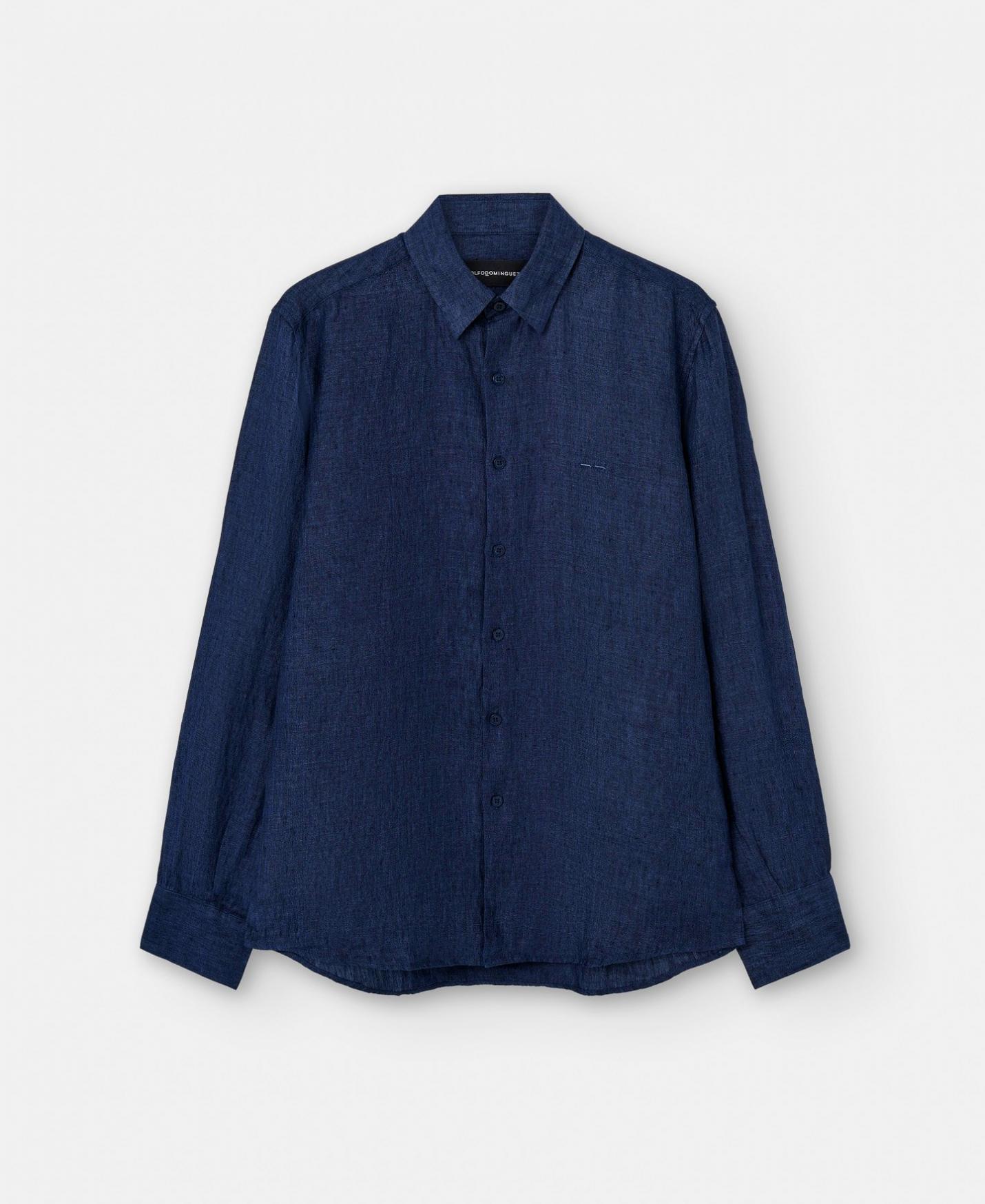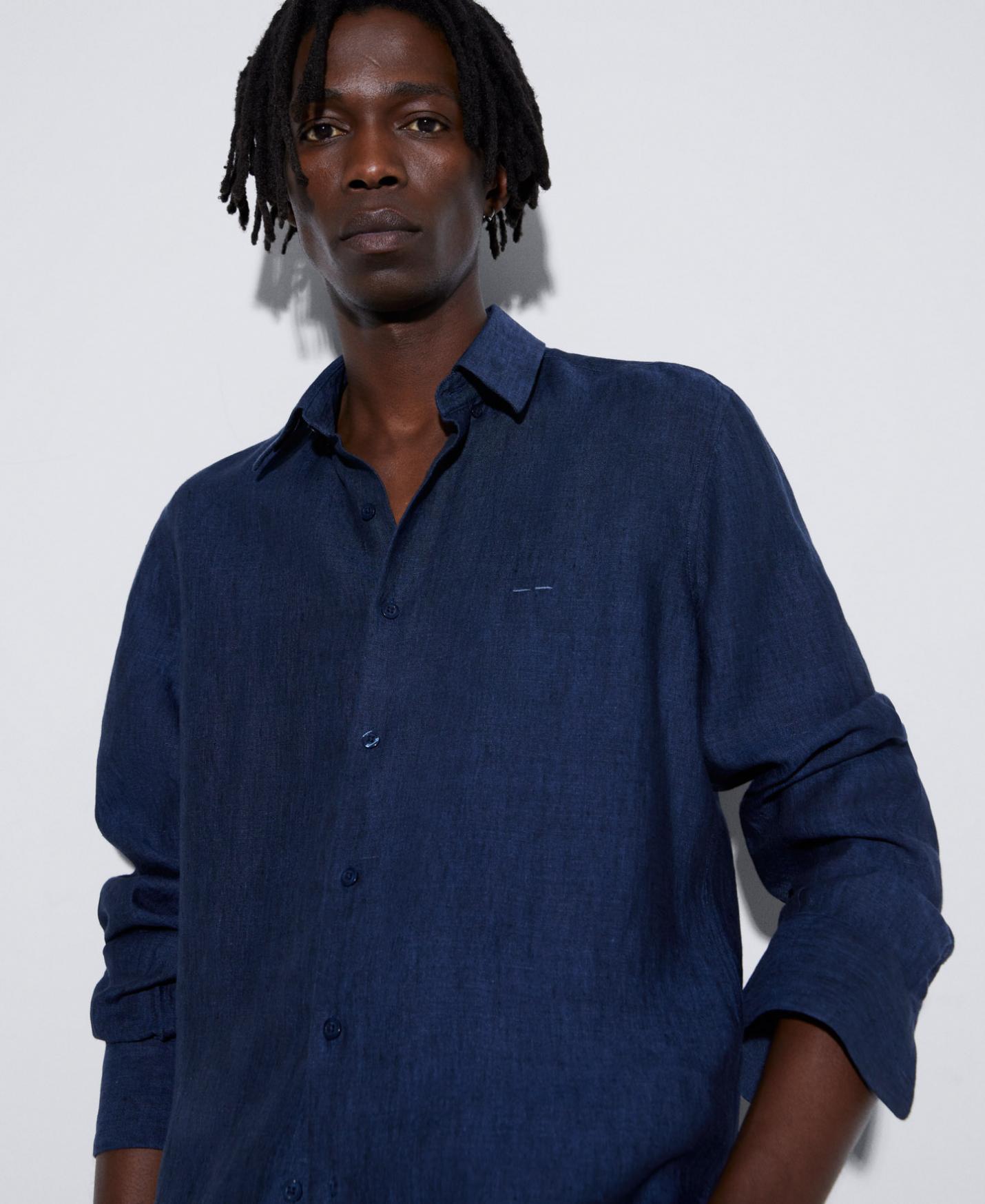 Camisa en 100% lino. Abotonada, con cuello camisero, bajo redondeado y manga larga. Logo en pecho.