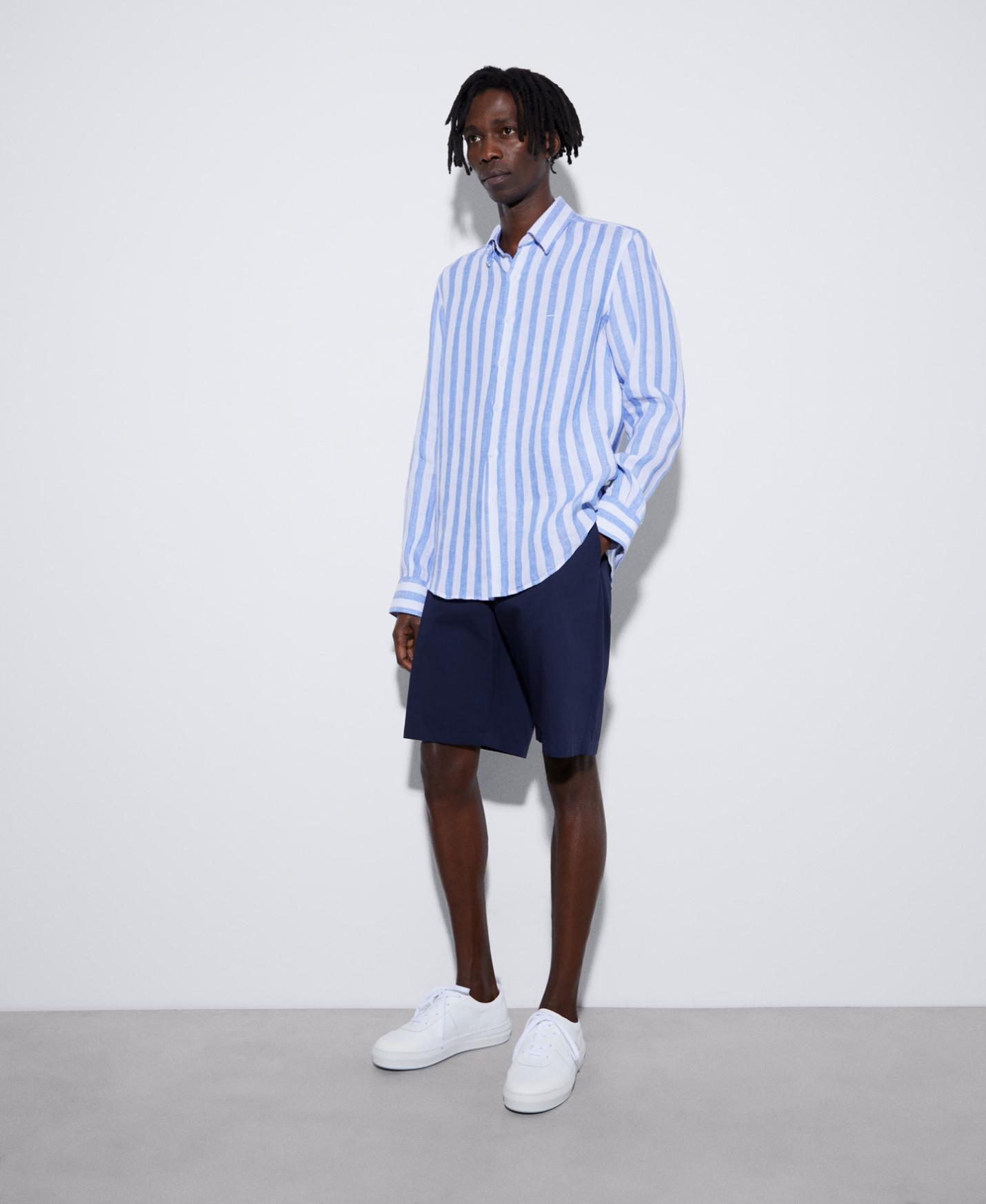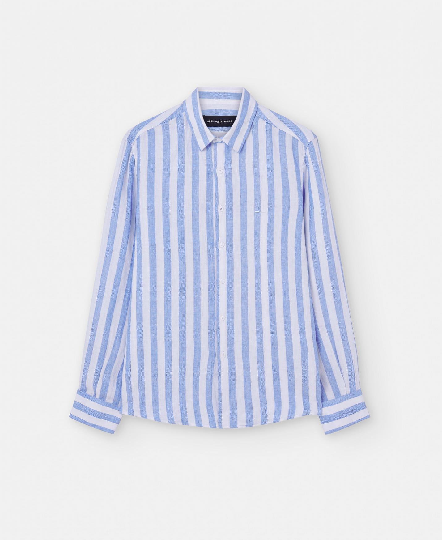 Lino Adolfo Dominguez | Camisa rayas cuello solapa en lino Rayasblanco/Azul Hombre
