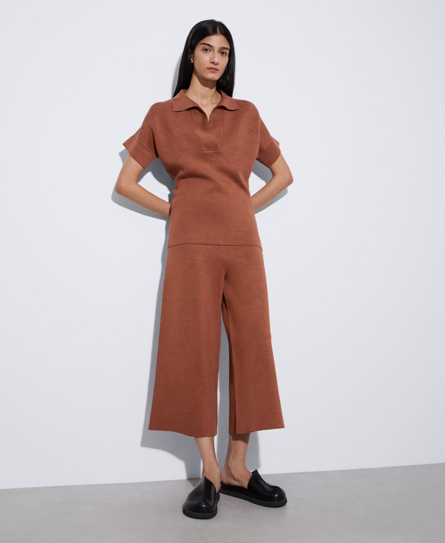 Pantalón culotte en doble punto de lino, viscosa y nylon. Tiro alto.