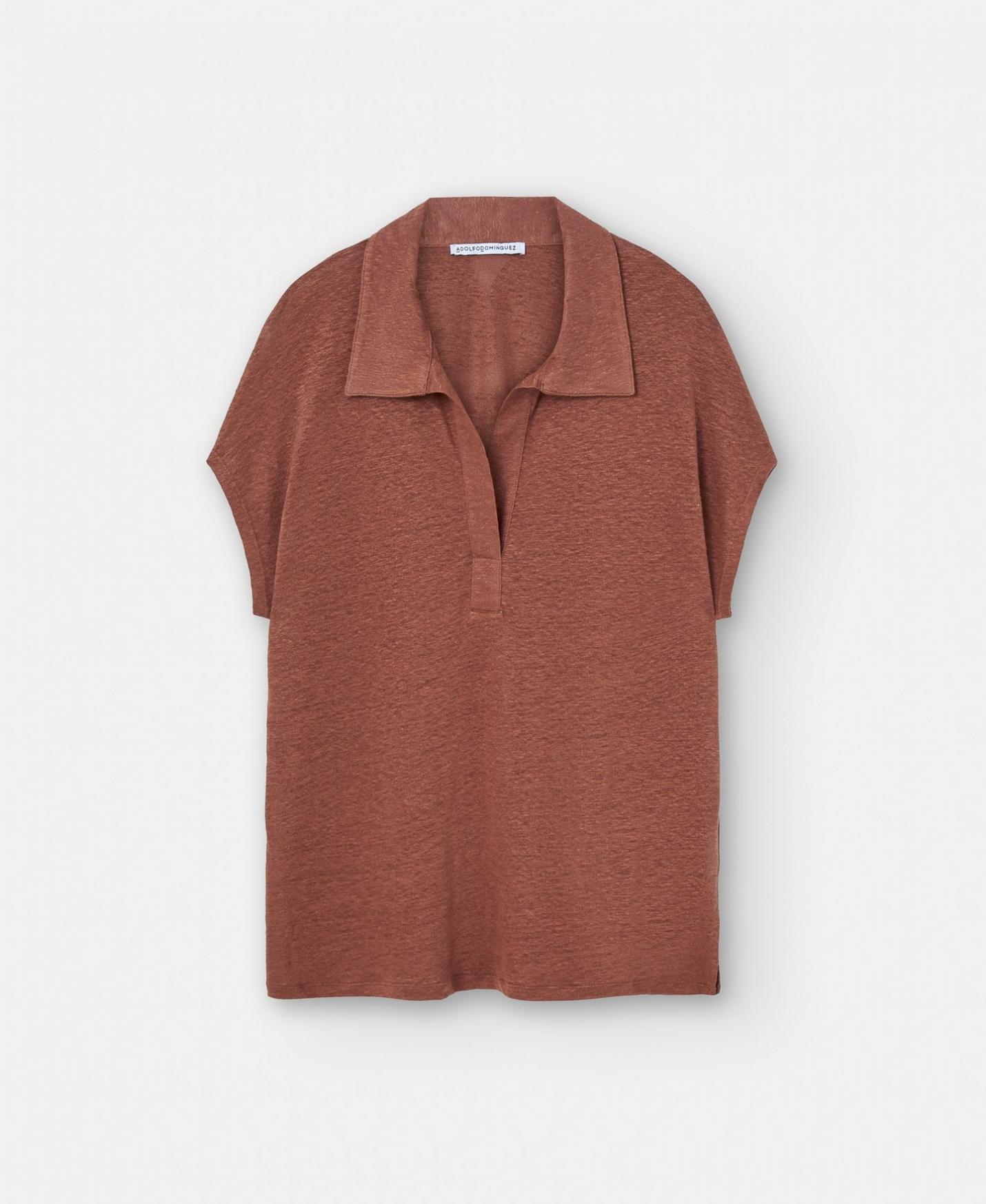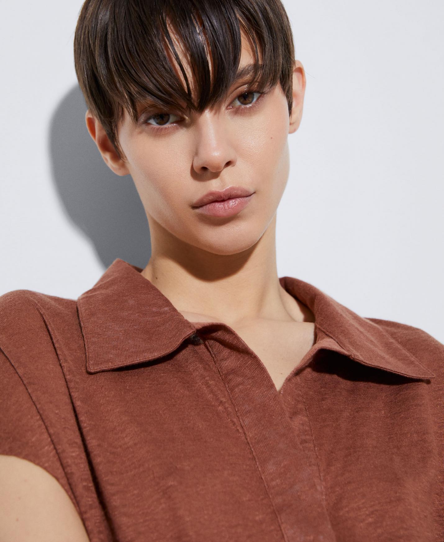 Lino Adolfo Dominguez | Polo con tapeta en lino Terracota Mujer