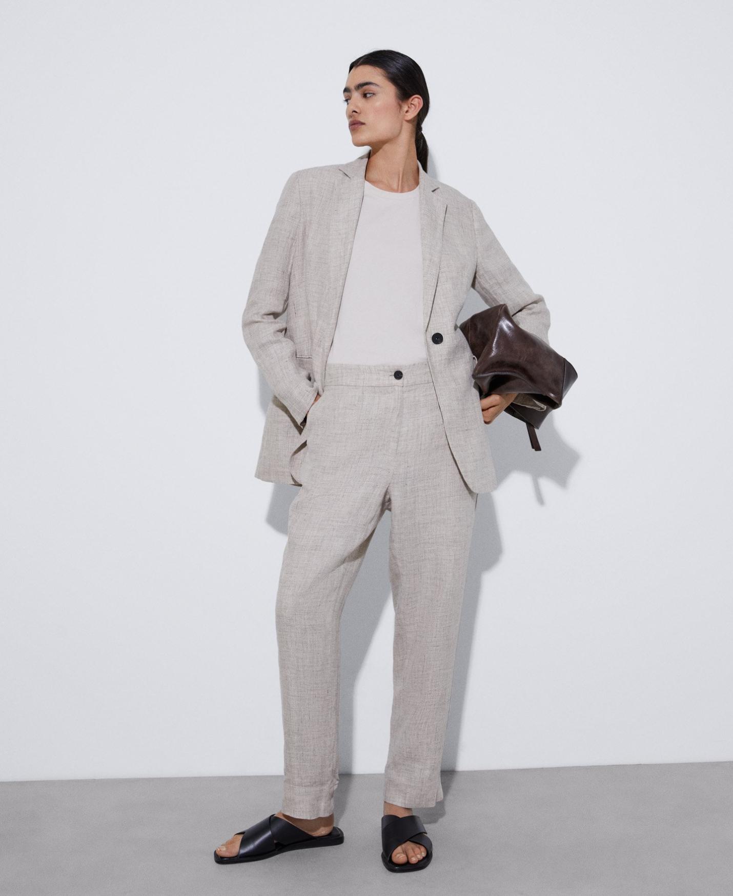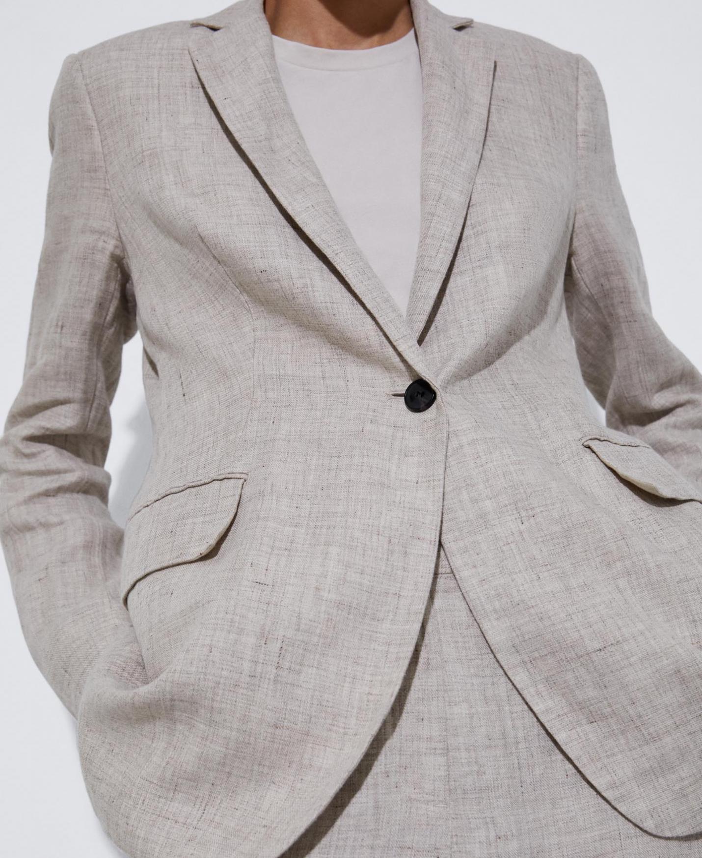 Nuevo traje Adolfo Dominguez | Blazer estructura ligera en lino europeo Camel Mujer