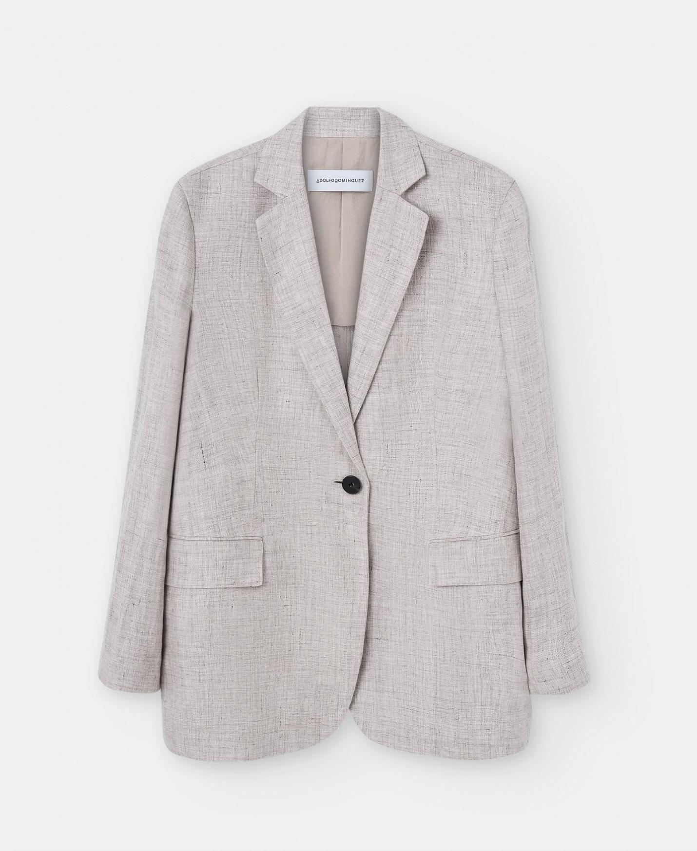 Blazer de estructura ligera en tejido de 100% lino europeo. Tiene un botón y dos bosillos.