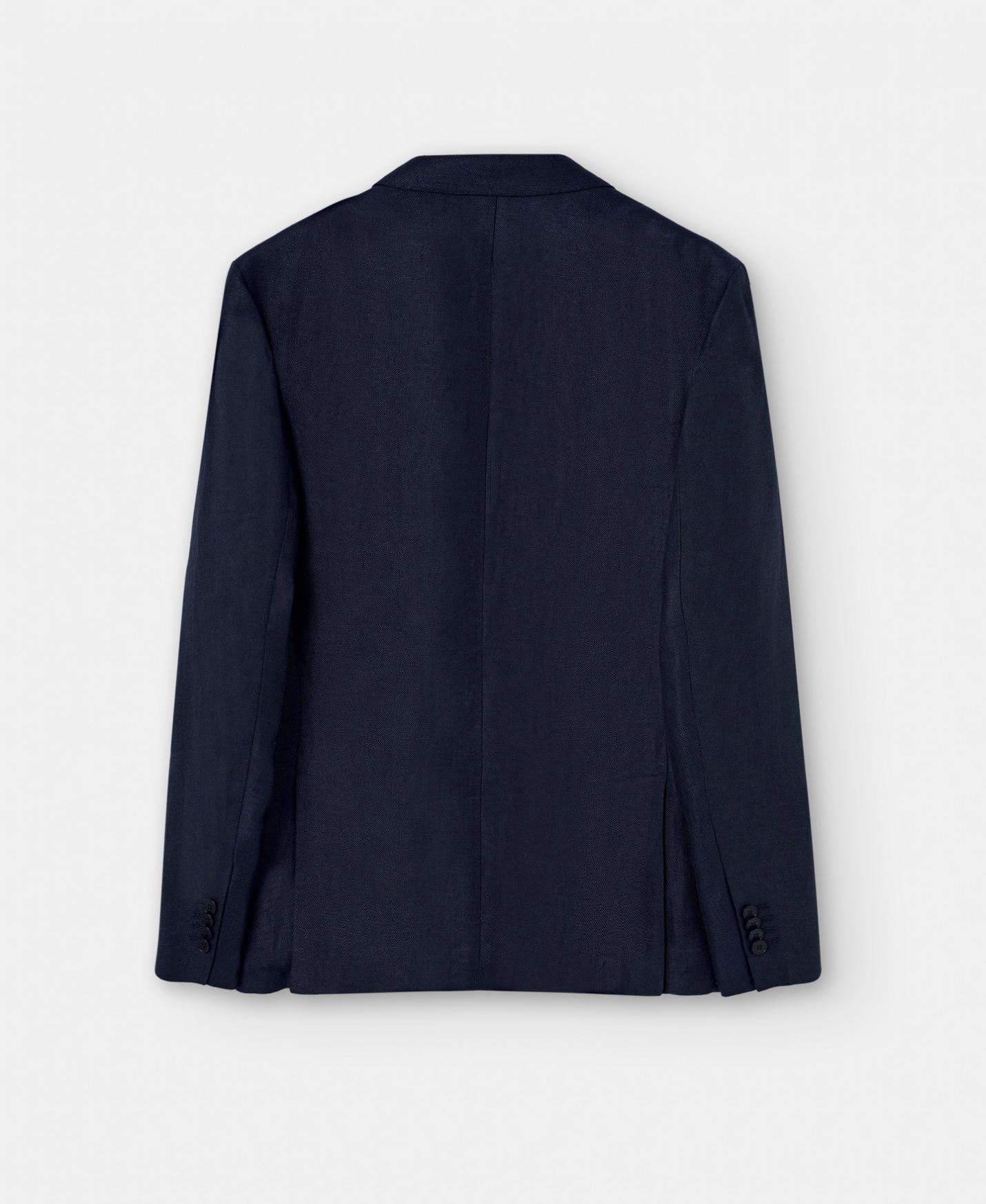 Blazer recta en 100% lino. Cuello solapa, cierre frontal de dos botones, tres bolsillos plastrón y manga larga.