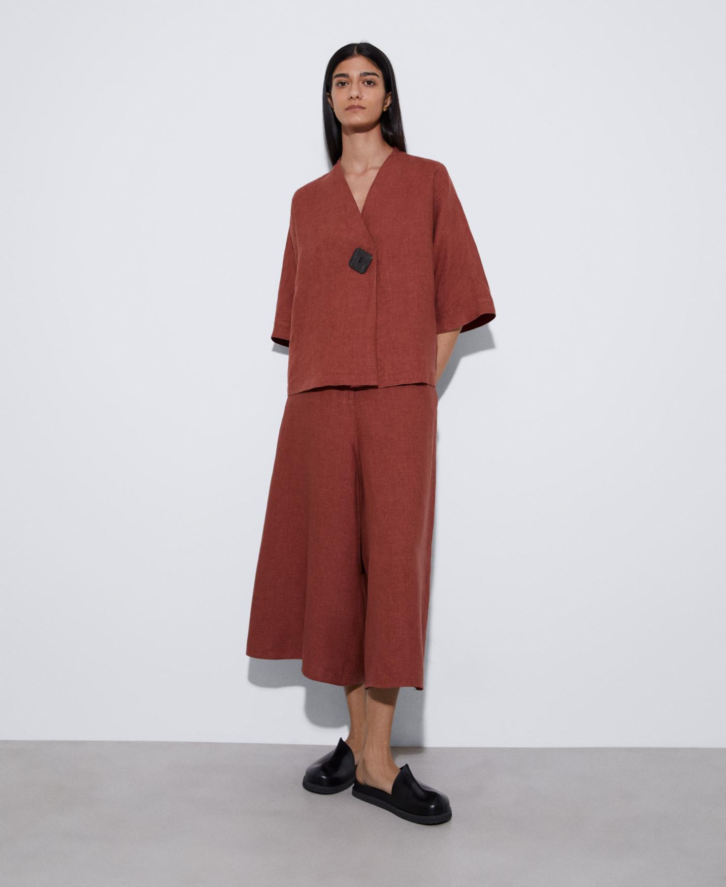 Nuevo traje Adolfo Dominguez | Pantalón cropped en lino europeo Rojooscuro Mujer