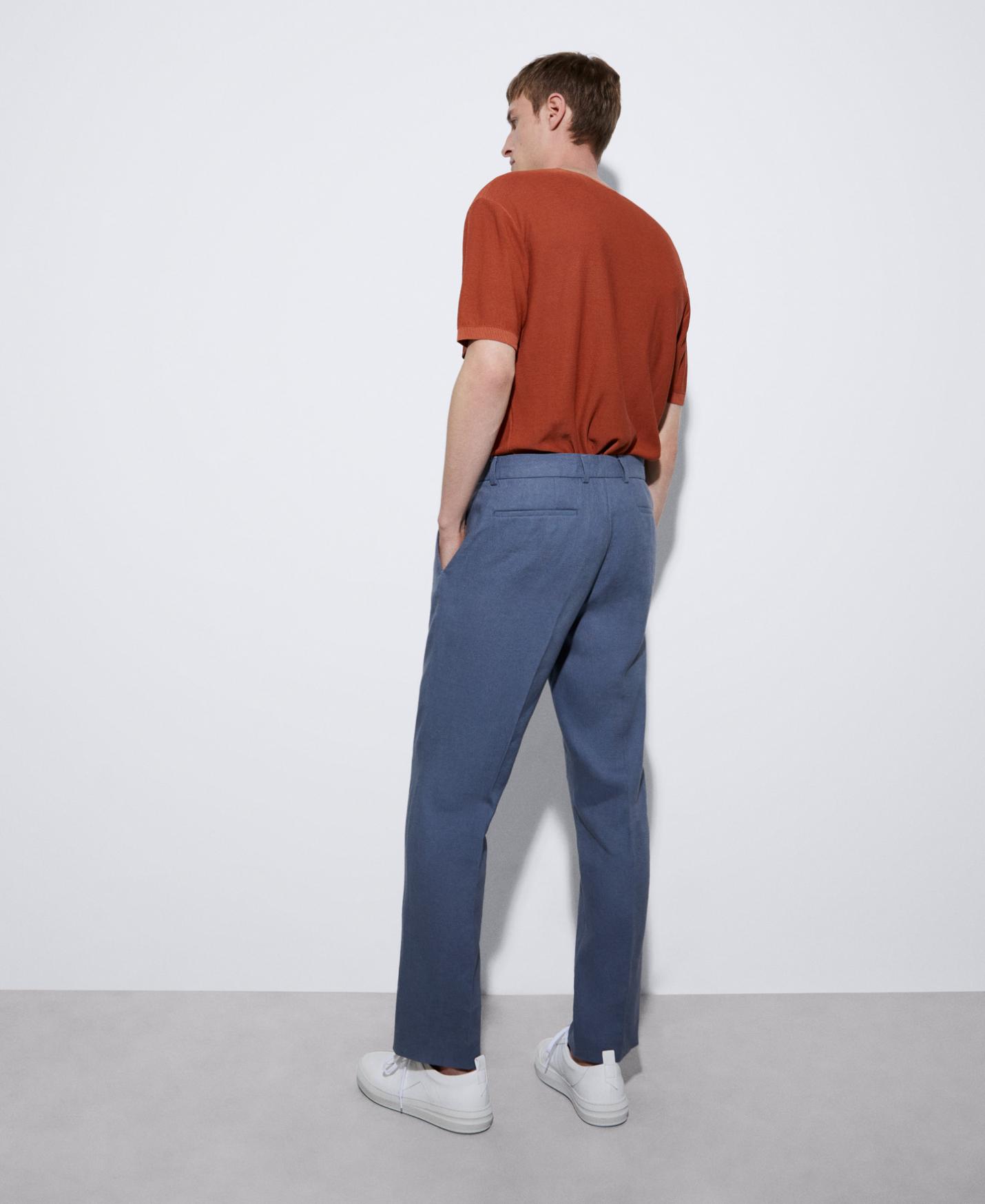Pantalón sastre en lino responsable europeo. Pierna recta, bolsillos laterales oblicuos, cierre cremallera y corchete.