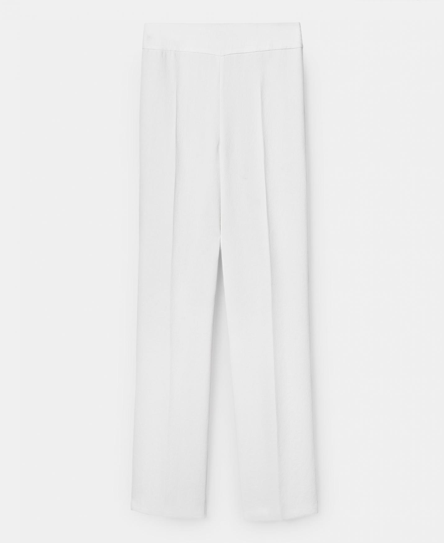 Pantalón recto con cinturilla ancha elástica, tiro alto y cierre de cremallera lateral.