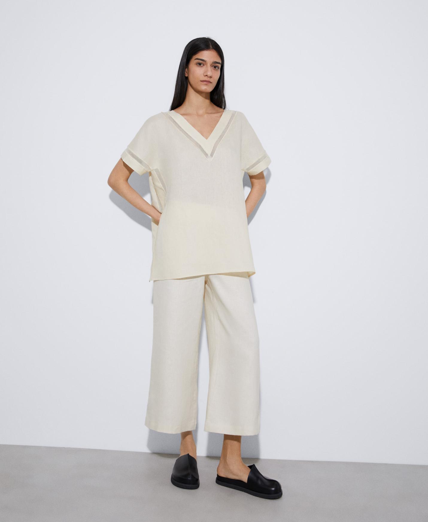 Pantalones Adolfo Dominguez | Pantalón culotte en lino responsable Crema Mujer