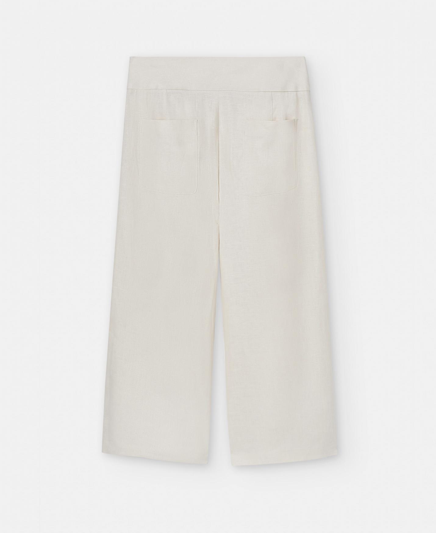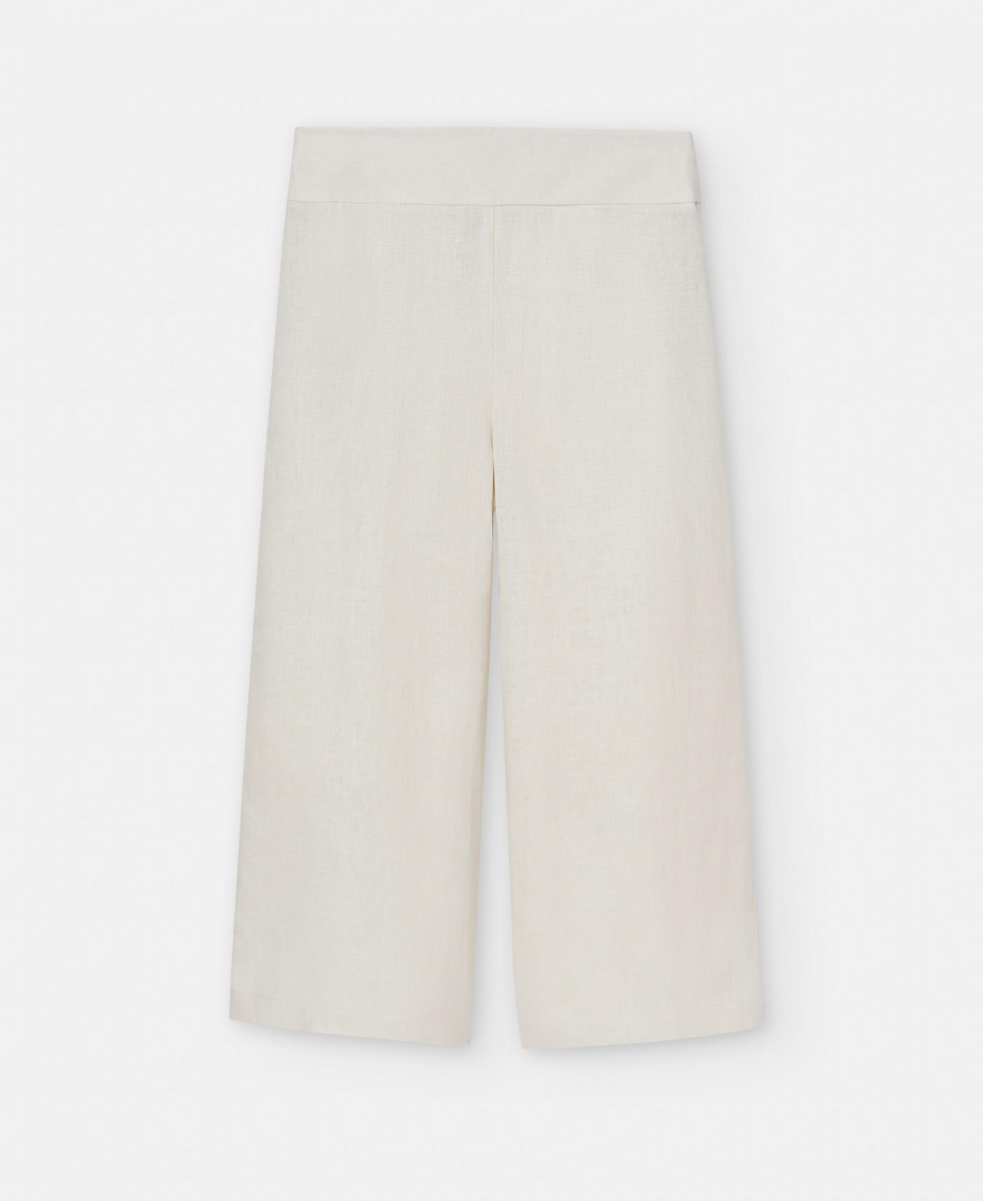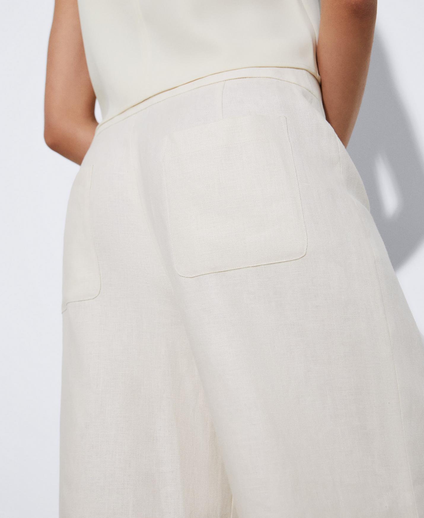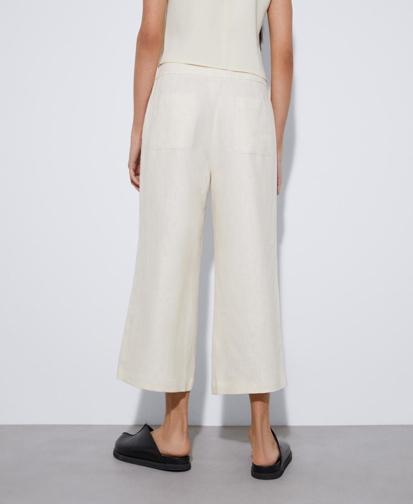 Pantalón culotte en lino responsable europeo. Con cintura ancha y bolsillos traseros.