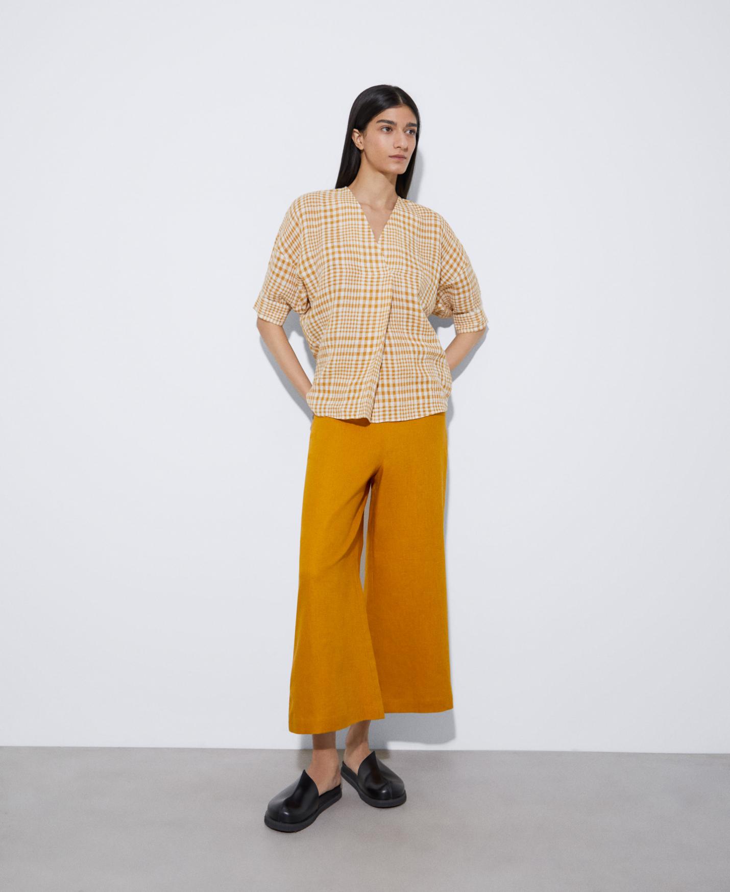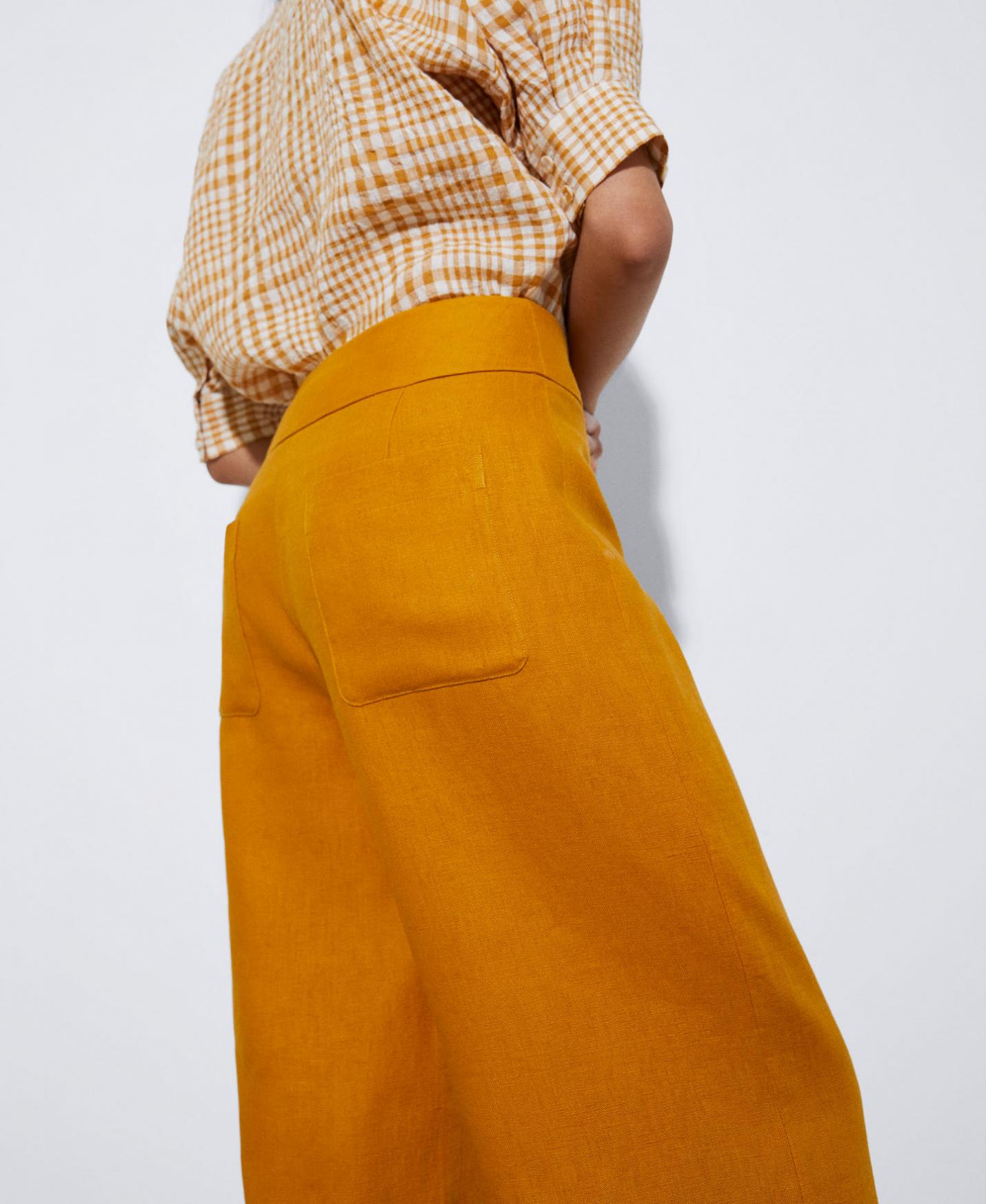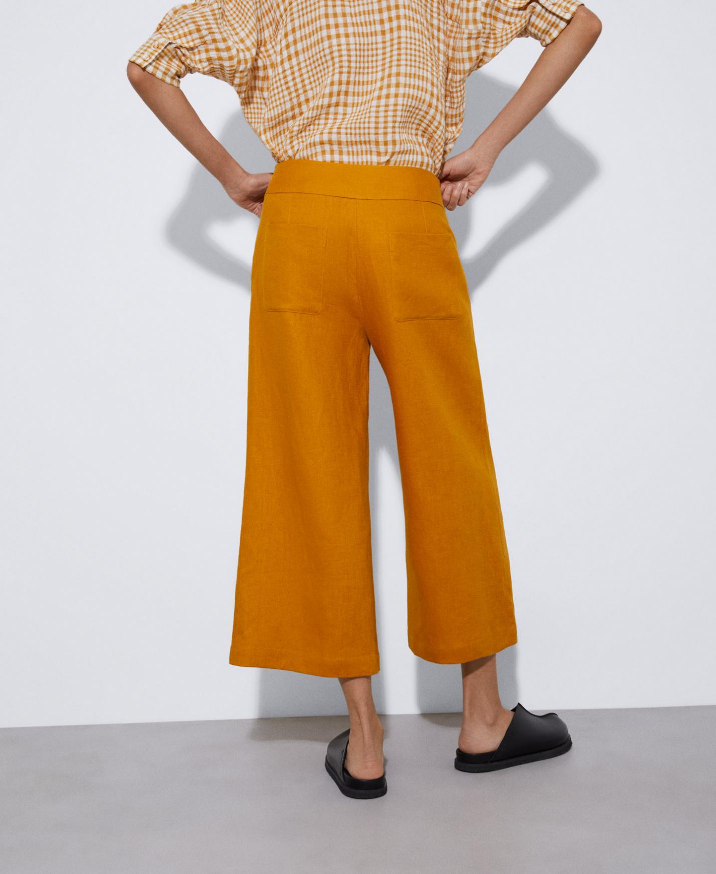 Pantalones Adolfo Dominguez | Pantalón culotte en lino responsable Mostaza Mujer