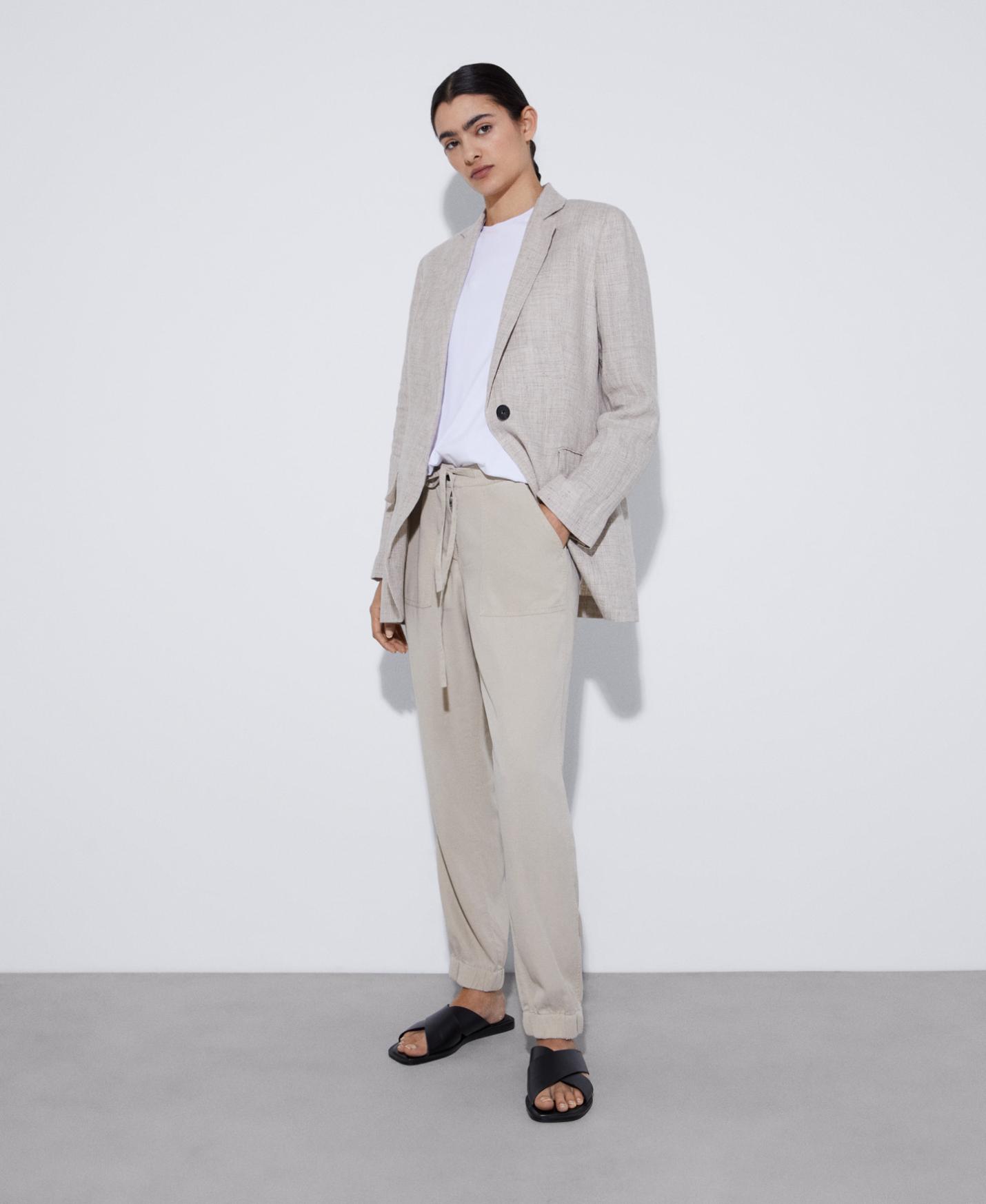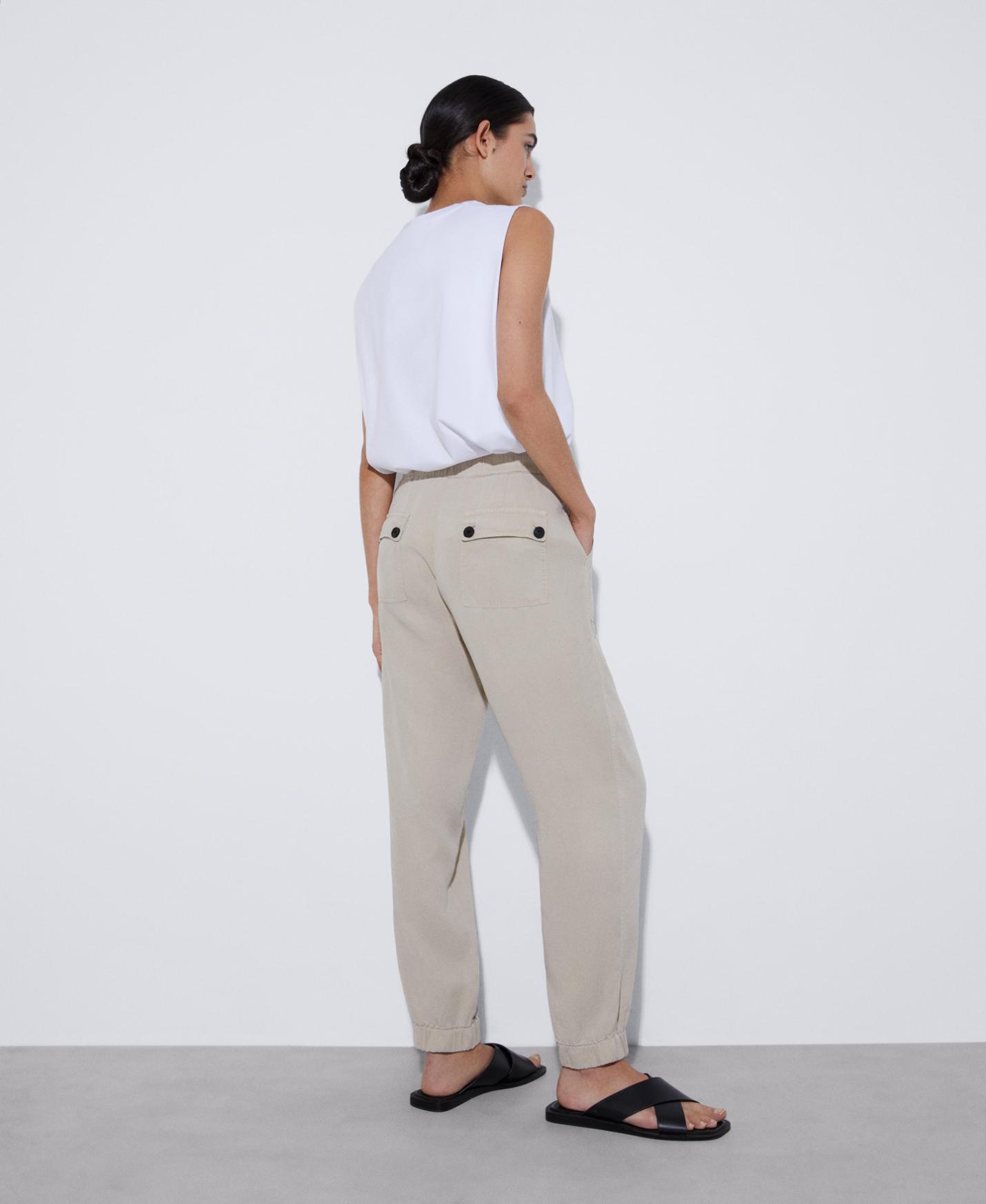 Pantalón jogger en lyocell™ de tencel. Con cintura y bajos elásticos, costuras cargadas y bolsillos frontales.