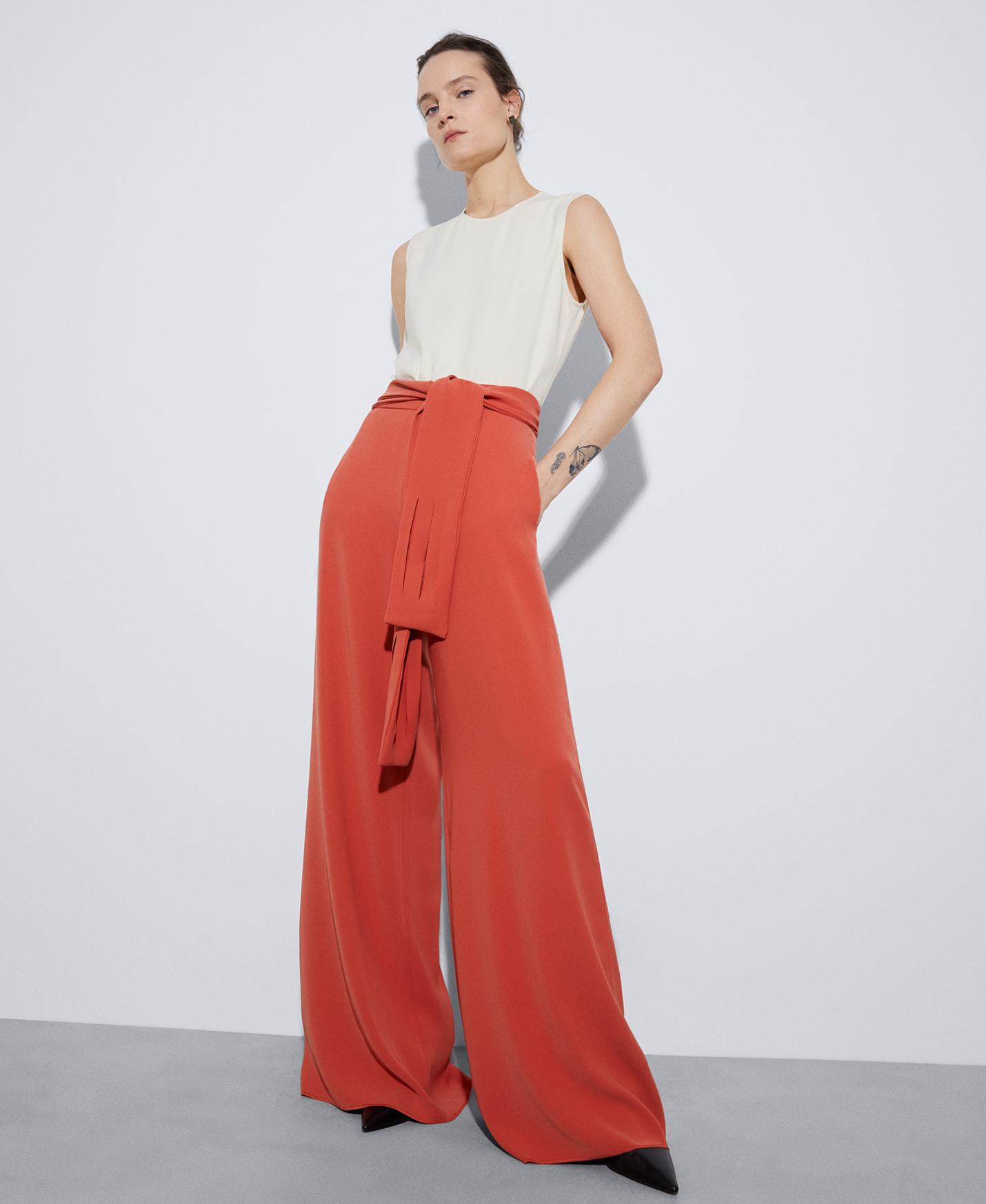Pantalones Adolfo Dominguez | Pantalón palazzo en poliéster reciclado Naranja Mujer