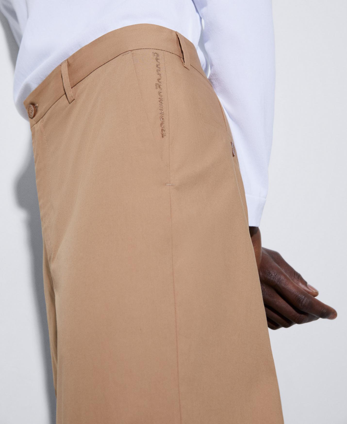 Pantalón recto en popelín de 100% algodón. Talle alto. Cierre cremallera y botón. Bolsillos.