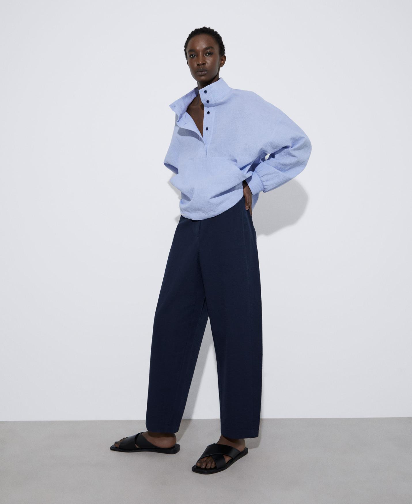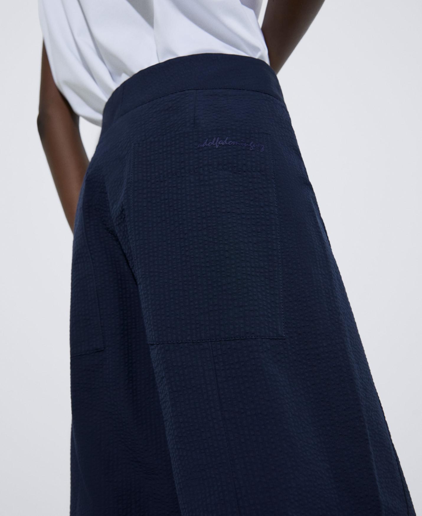 DescripciónRef.268191868121 Pantalón zanahoria seersucker de algodón responsable. Bolsillos delanteros. Cierre botón y cremallera. seersucker algodón responsable corte zanahoria cierre botón …