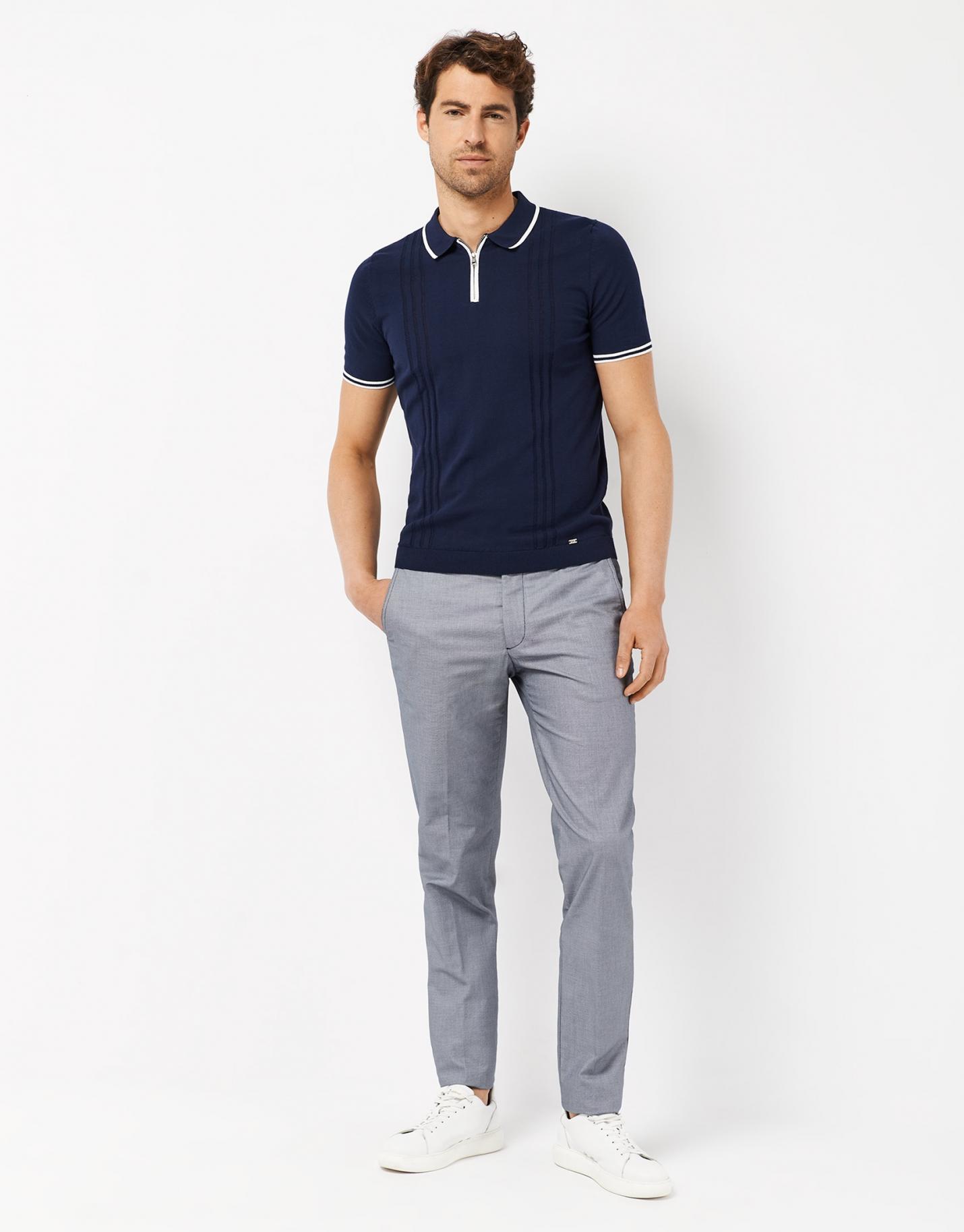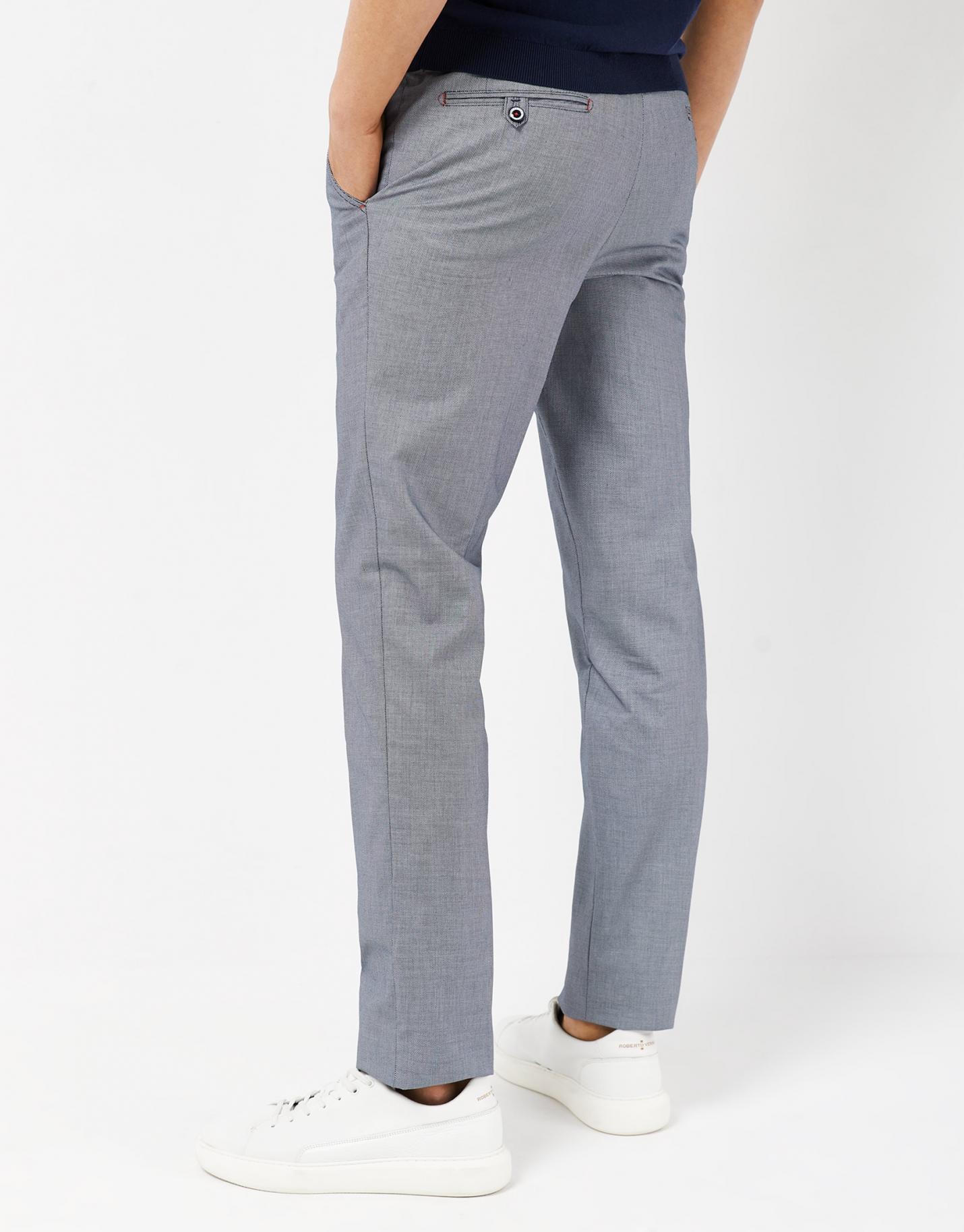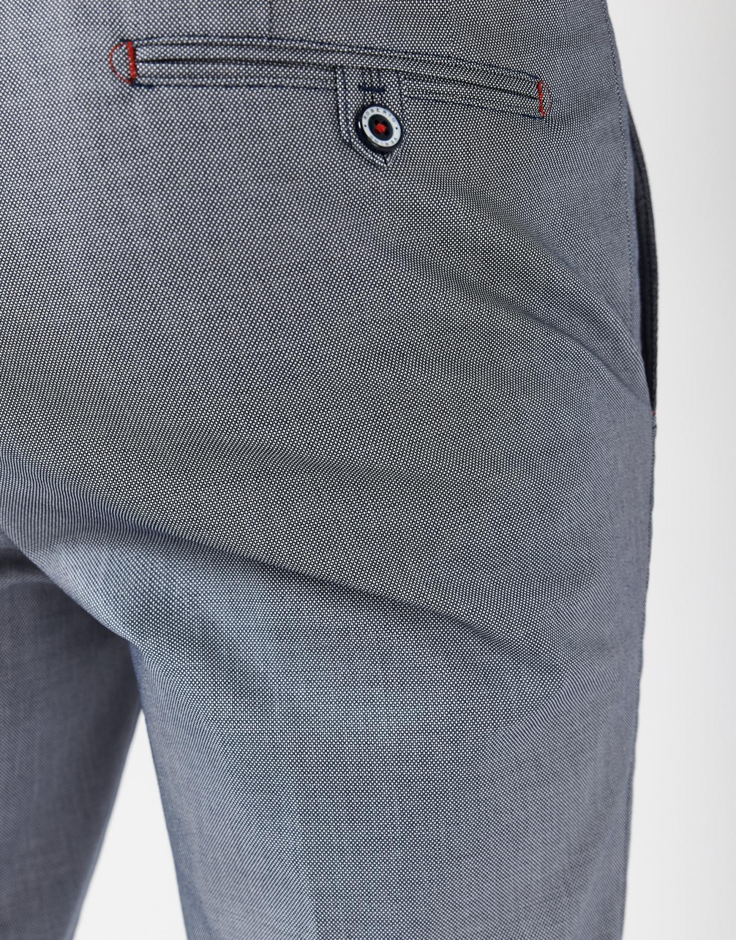 Pantalón chino regular fit confeccionado en un tejido de algodón con estructura marino. Bolsillos franceses en el delantero y de vivo con trabilla y botón en la espalda.