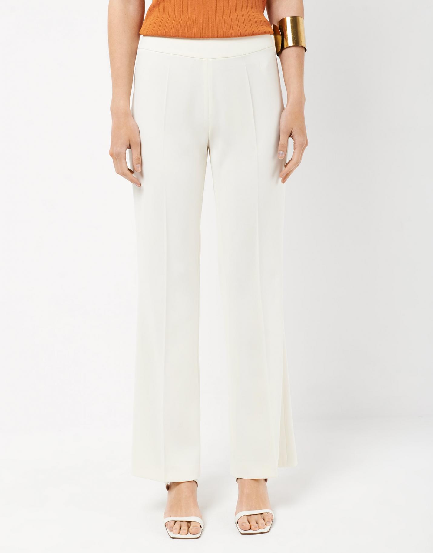 Pantalón recto confeccionado en un tejido fluido color crudo. Cintura con cremallera invisible en costado.